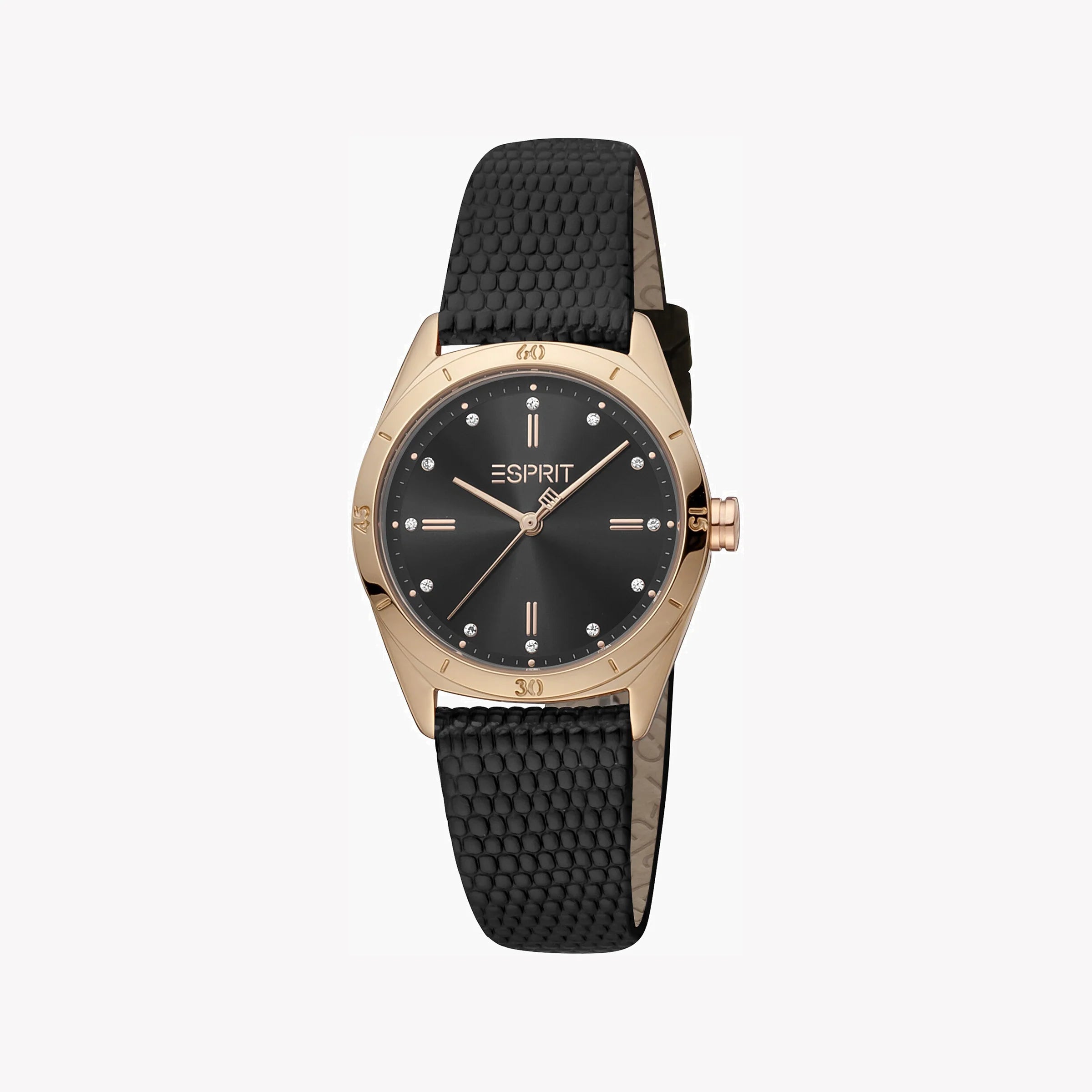 It's time to upgrade your style. Our Esprit Women's watch is the perfect accessory for any outfit. With a Black Leather band and a Black dial, this watch has everything you need. It's been carefully designed to be both timeless and stylish so you look good from day to day. This Esprit watch is made of Stainless Steel which makes it very durable and reliable. It has a Stainless Steel Round Rose Gold case with a diameter of 30 mm it will be a great addition to your outfit