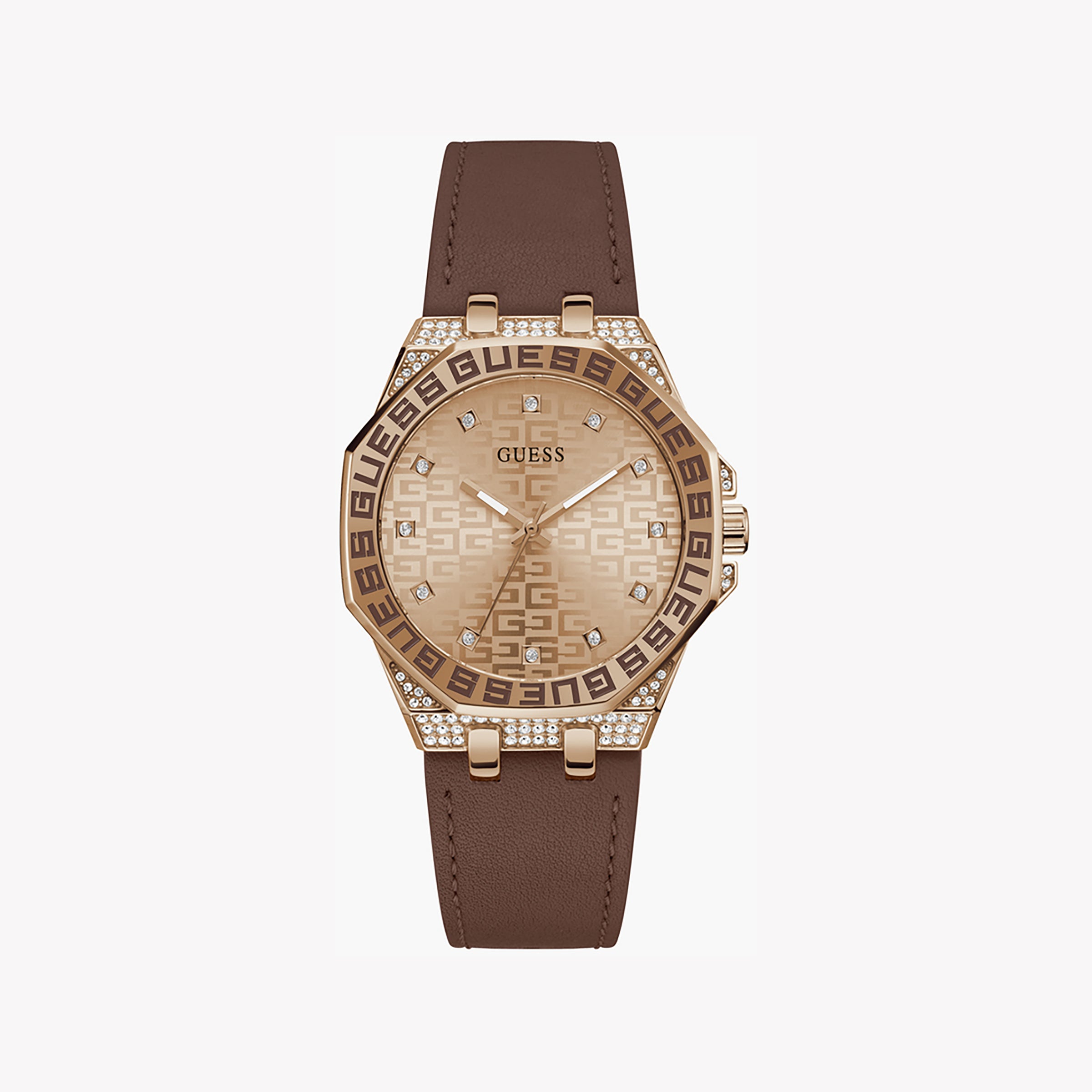 Guess Women's Rose Gold Watch, Brown Leather Band | Gw0547l2