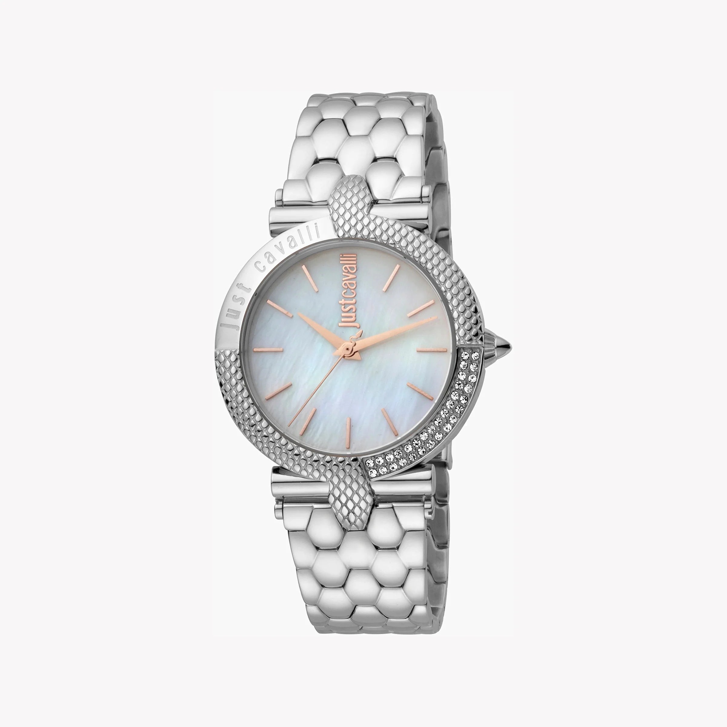 Just Cavalli Women's Silver Watch, White Mother Of Pearls Dial | Jc1l105m0055