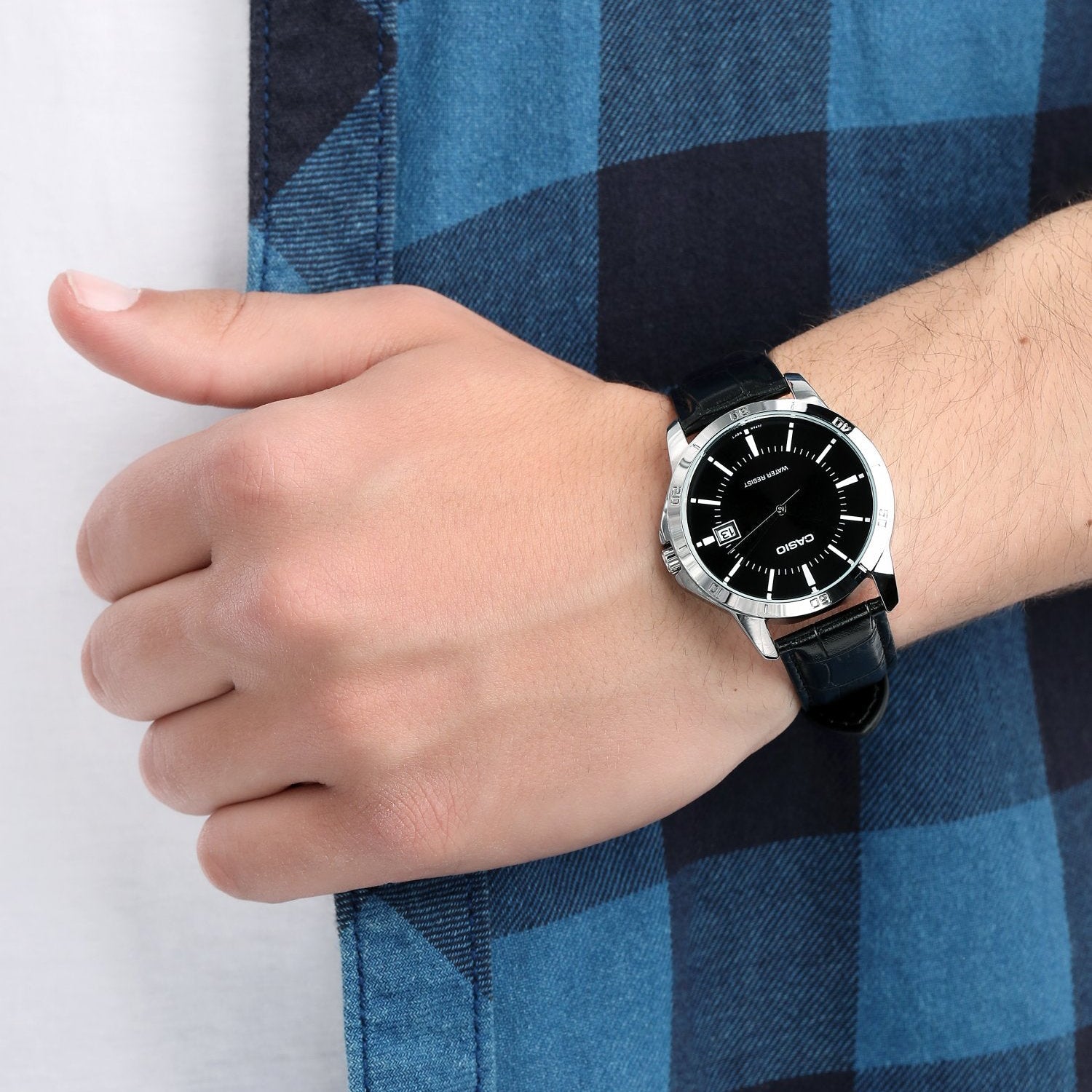 Casio Men's Silver Stainless Steel, Black Leather | Mtp-V004l-1audf