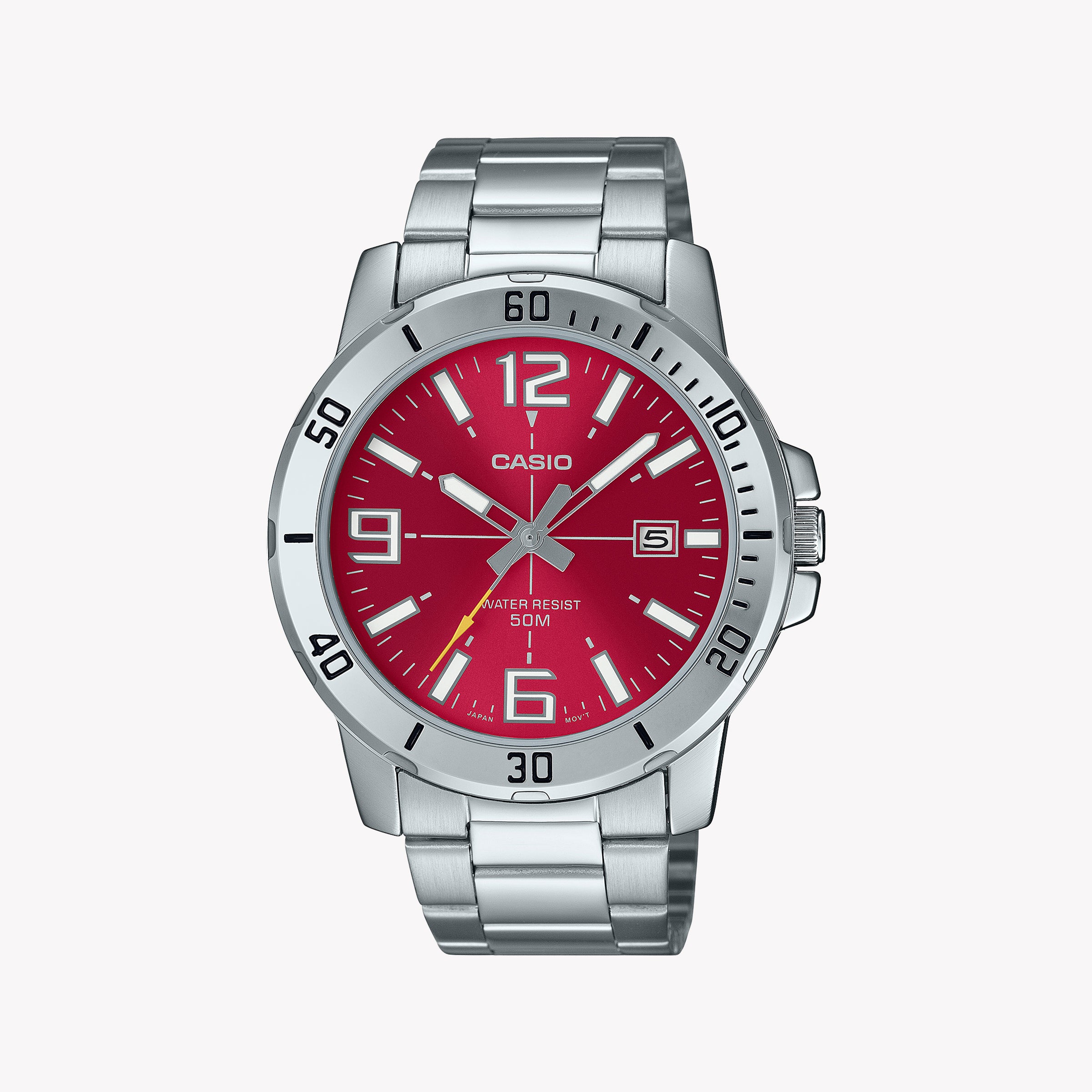 Casio Men's Silver Watch, Red Dial | Mtp-Vd01d-4bvudf
