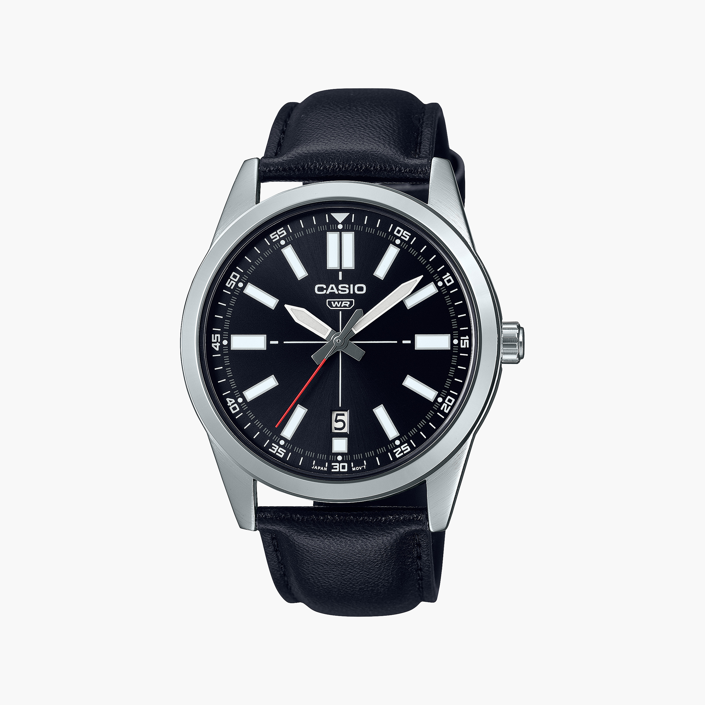 Casio Men's Silver Stainless Steel, Black Leather | Mtp-Vd02l-1e