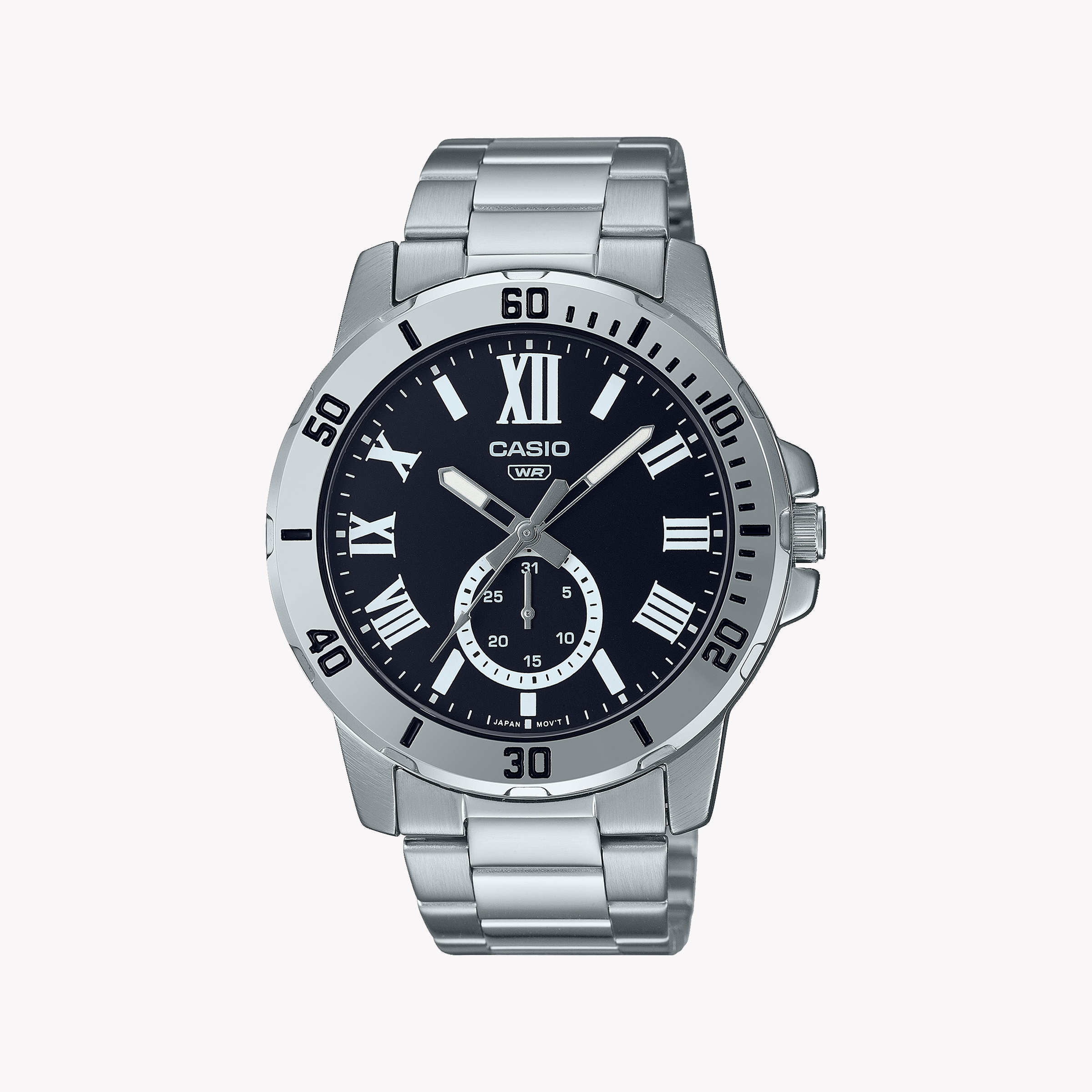 Casio Men's Silver Watch, Black Dial | Mtp-Vd200d-1b