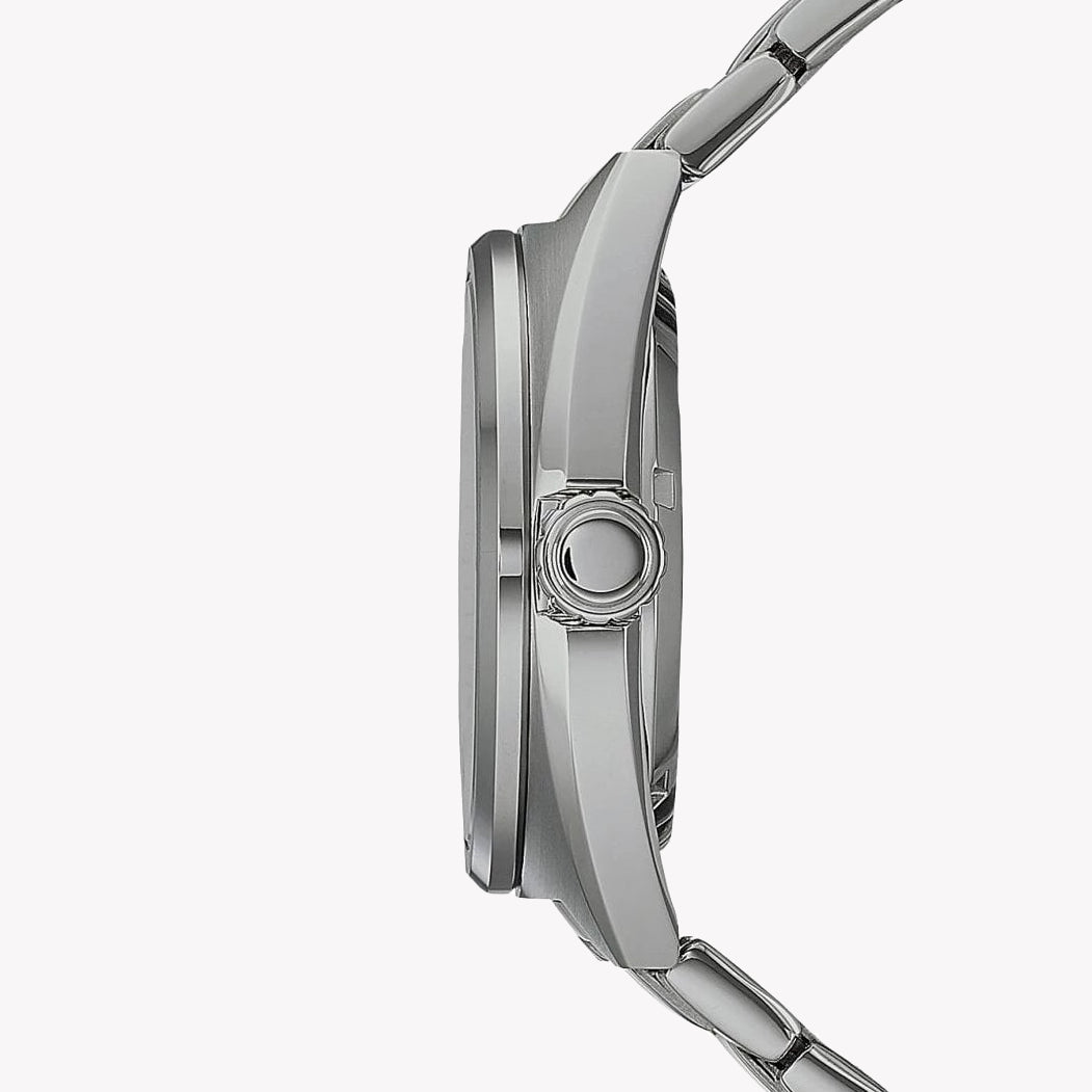 - Bold Appearance: The 45 mm stainless steel case shines in a radiant silver hue, perfectly matched with a sleek silver stainless steel band, making it a standout accessory for any occasion.