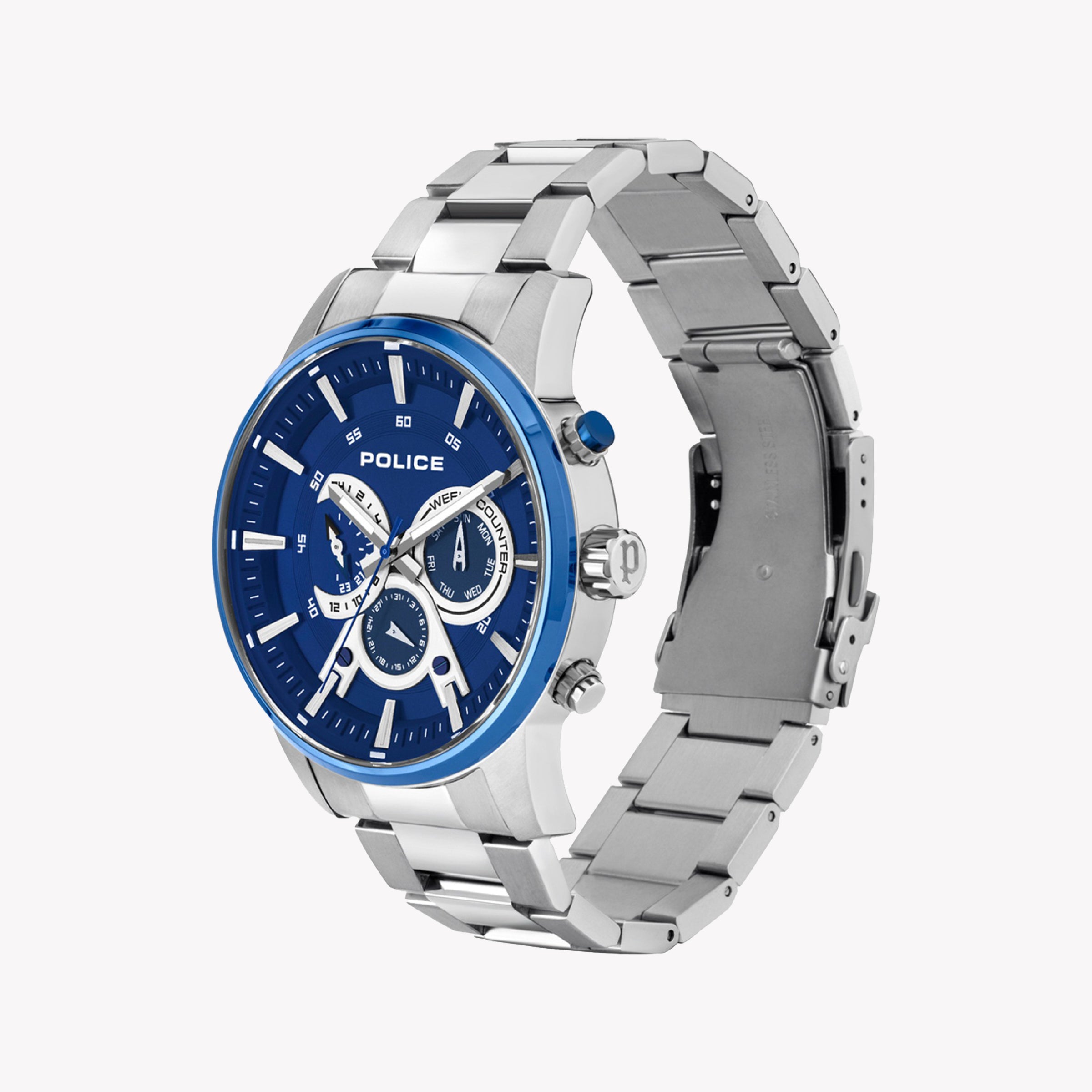 Police Men's Blue Stainless Steel Watch, Silver Band | P15523jstbl03m