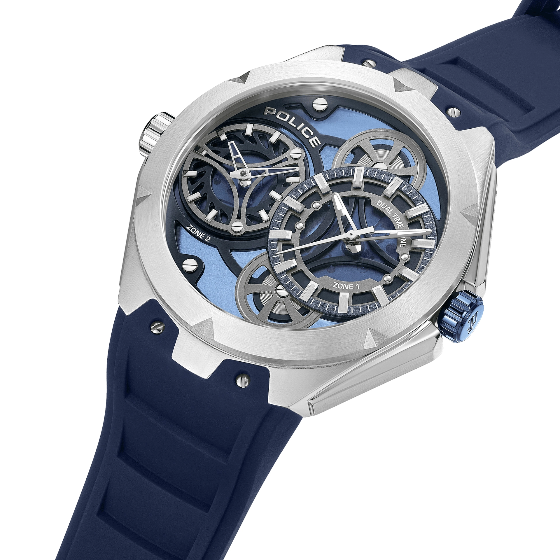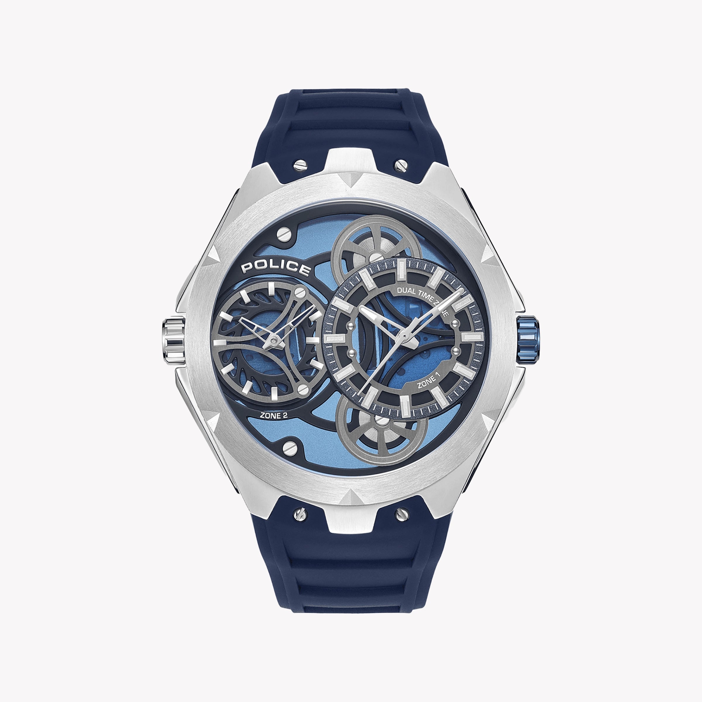 POLICE Men's Stainless Steel Blue Silicone Watch, Multicolor | PEWGM0081703