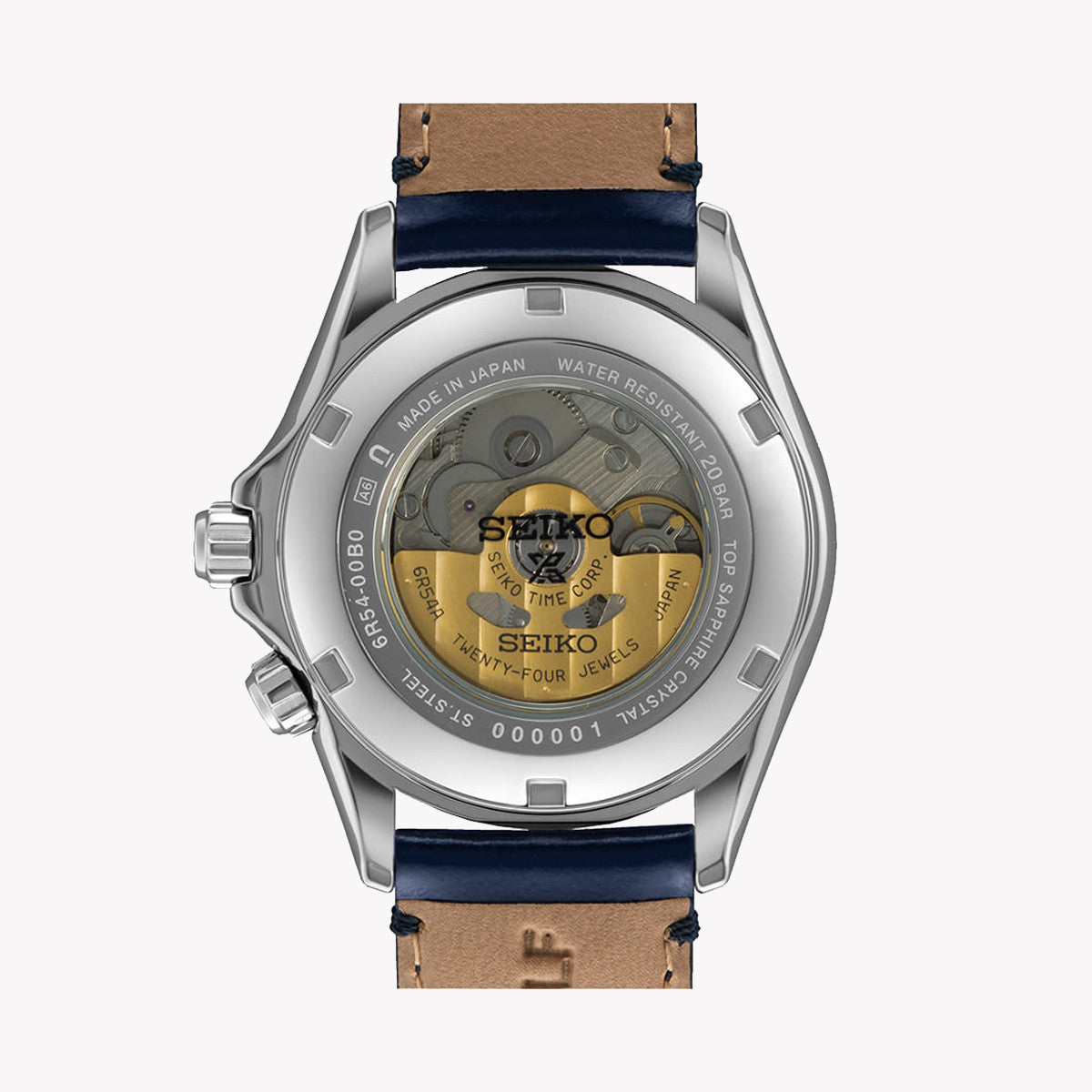 Experience sophistication with the Seiko Prospex SPB377J1, featuring a stunning blue dial and durable stainless steel case. This elegant timepiece, with its luxurious blue leather band and 20 ATM water resistance, is perfect for adventurous women seeking style and reliability. Your journey awaits!