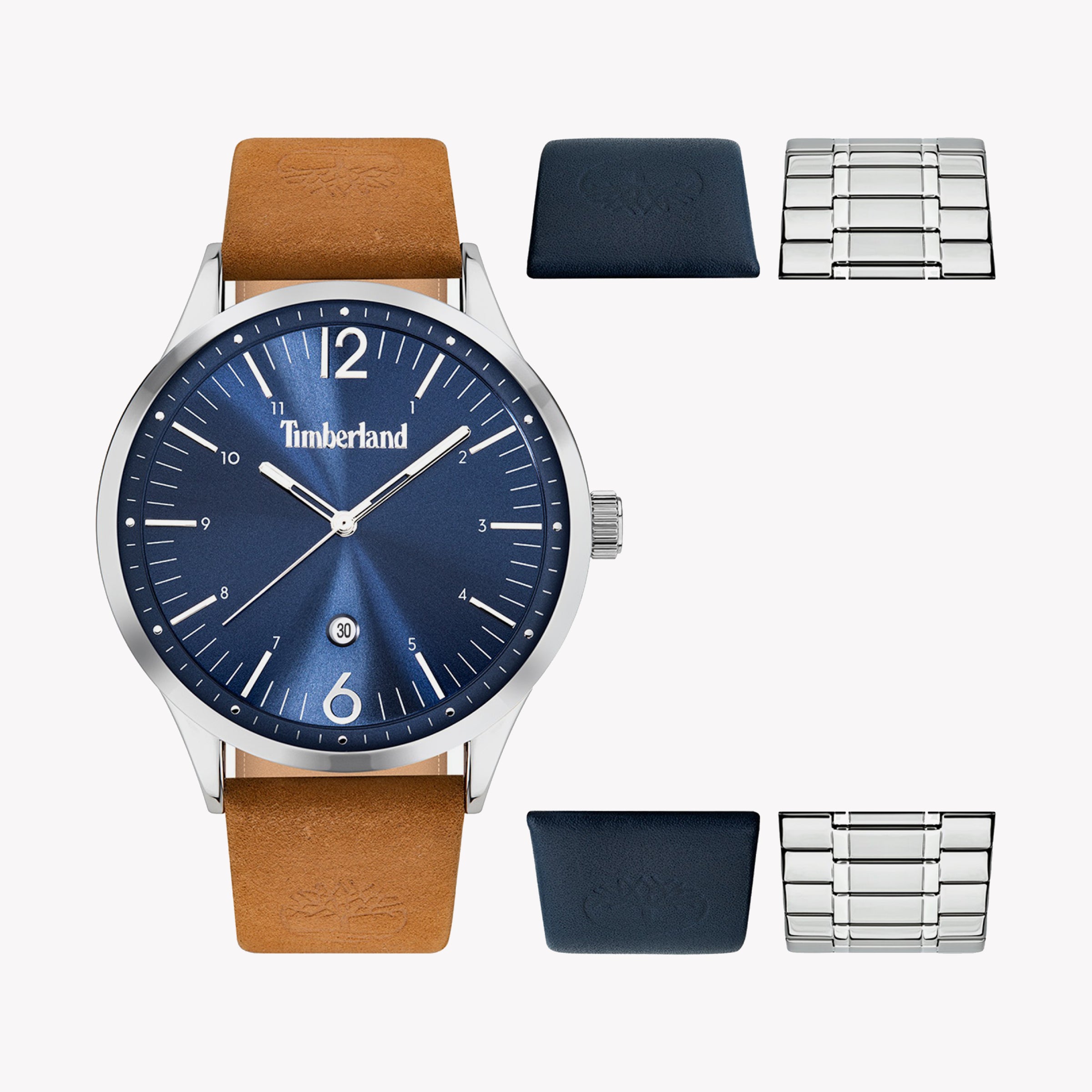 Timberland Men's Brown Leather Watch, Blue Dial | Tdwjb2000350
