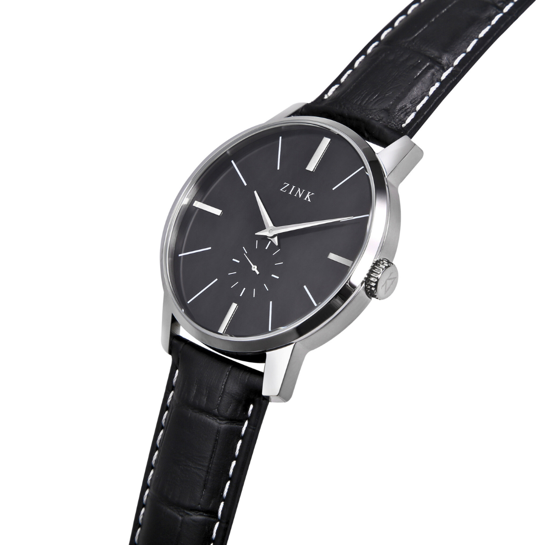A watch is more than a timekeeper; it is a symbol of elegance encased in a showpiece with extreme craftsmanship. ZINK crafted the designs of Men's watches into contemporary timepieces dedicated to detail. This ZINK Watch is made for modern Men who are looking for a timepiece that can be used on every occasion. With its Black premium Leather band and its Black dial, this watch is both fashionable and functional. Featuring a bold Round Stainless Steel case with a diameter of 44 mm, this elegant timepiece is the ideal choice for your everyday outfits as it has a straightforward design with an eye-catching style.