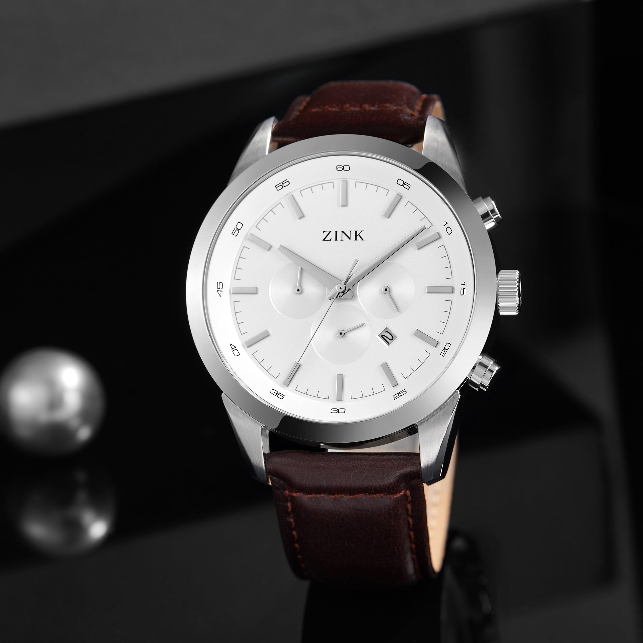 Zink Zk134g2ls-12 Elegant Timepiece - Modern Men's Watch With Brown Leather Band & Silver Dial