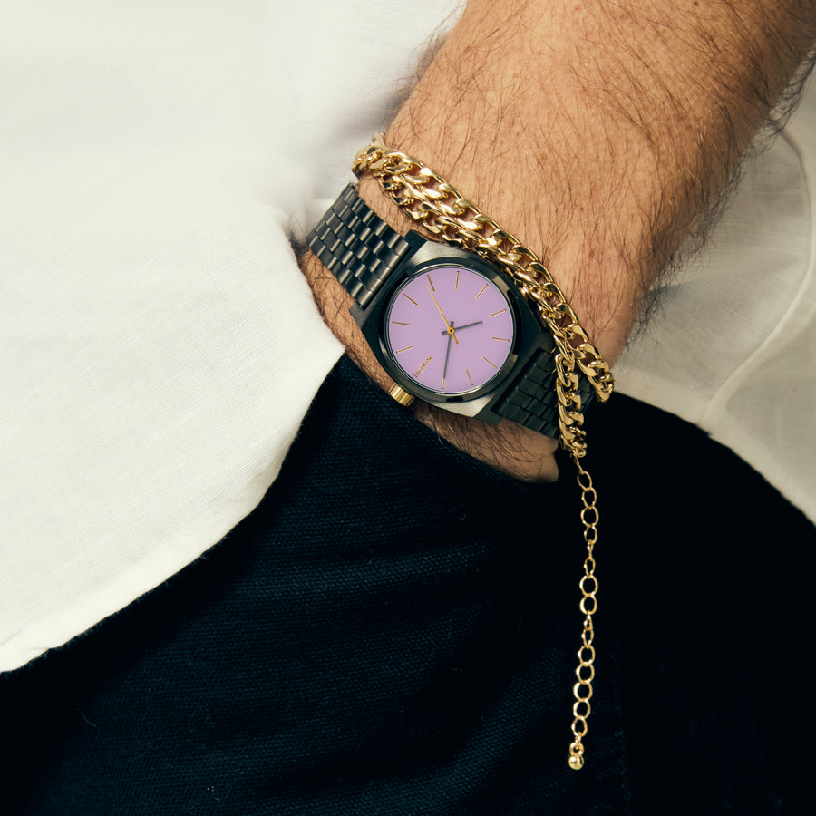- Striking Aesthetic: The Nixon A1130-5271 showcases a compact 31 mm stainless steel case in a sleek black finish, with a vibrant purple dial that pops against the bold backdrop, ensuring it stands out in any crowd.