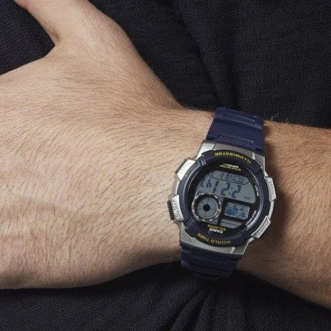 Casio Men's Grey Blue Resin Watch, Digital Display | Ae-1000w-2avdf