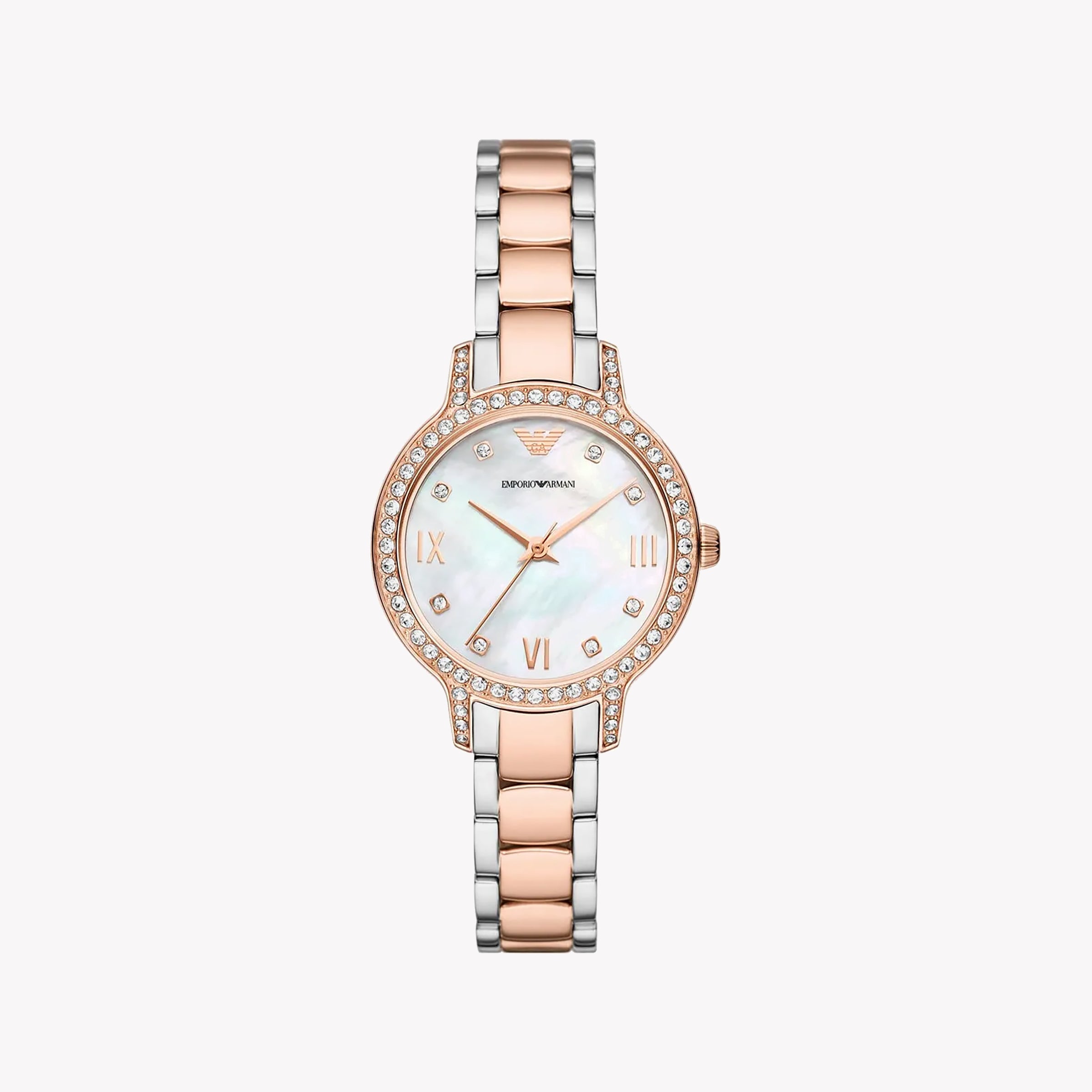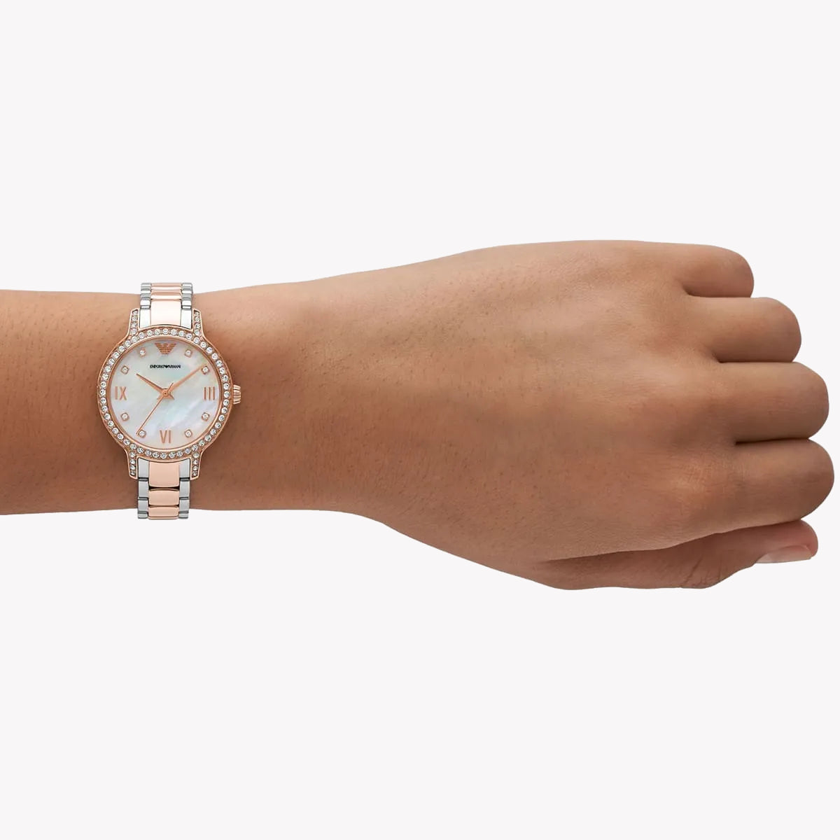 Emporio Armani Women's Rose Gold Watch, Silver Band | Ar11499