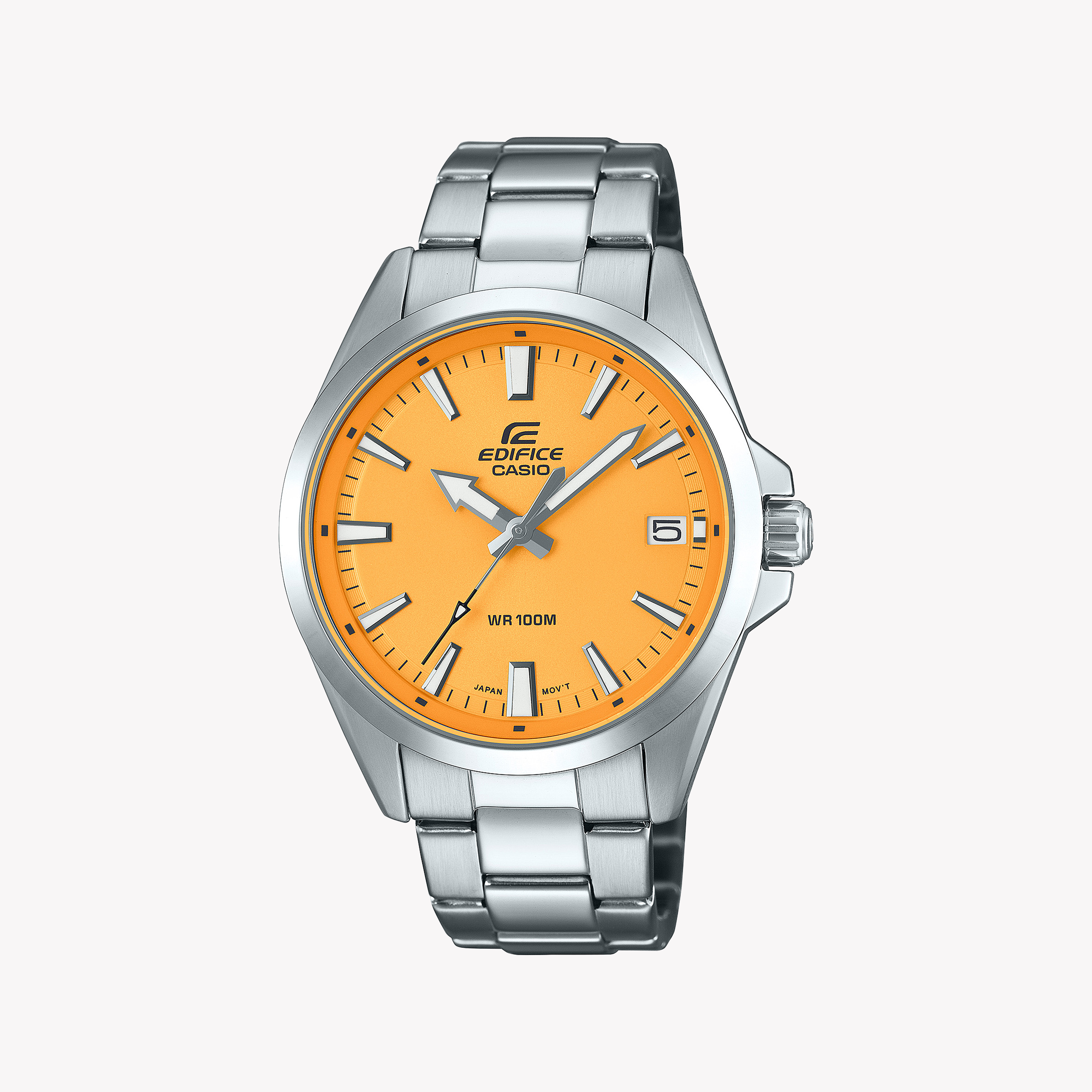 Edifice Men's Silver Stainless Steel Watch, Orange Dial | Efv-100d-9avuef