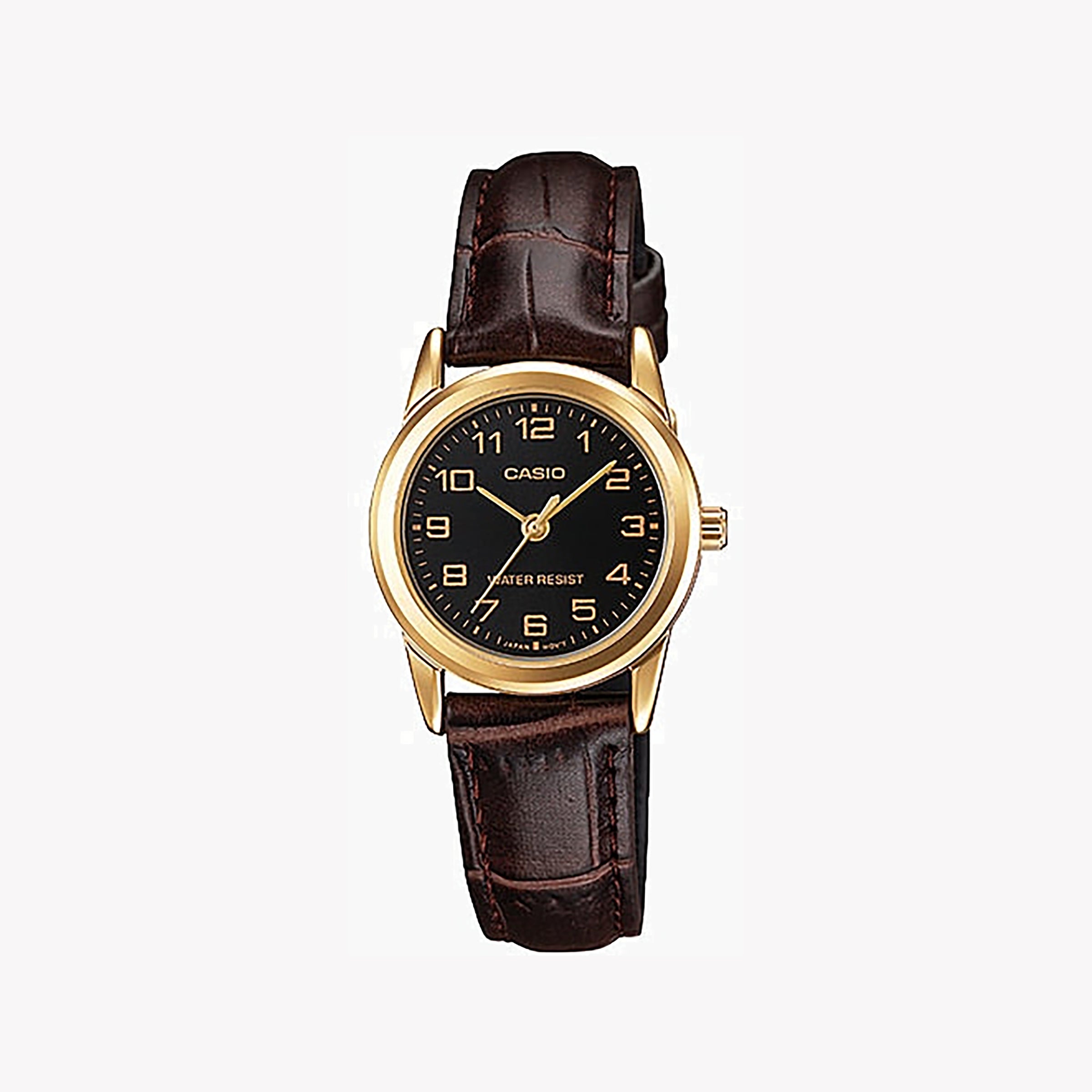 Casio Women's Gold Stainless Steel, Brown Leather | Ltp-V001gl-1b