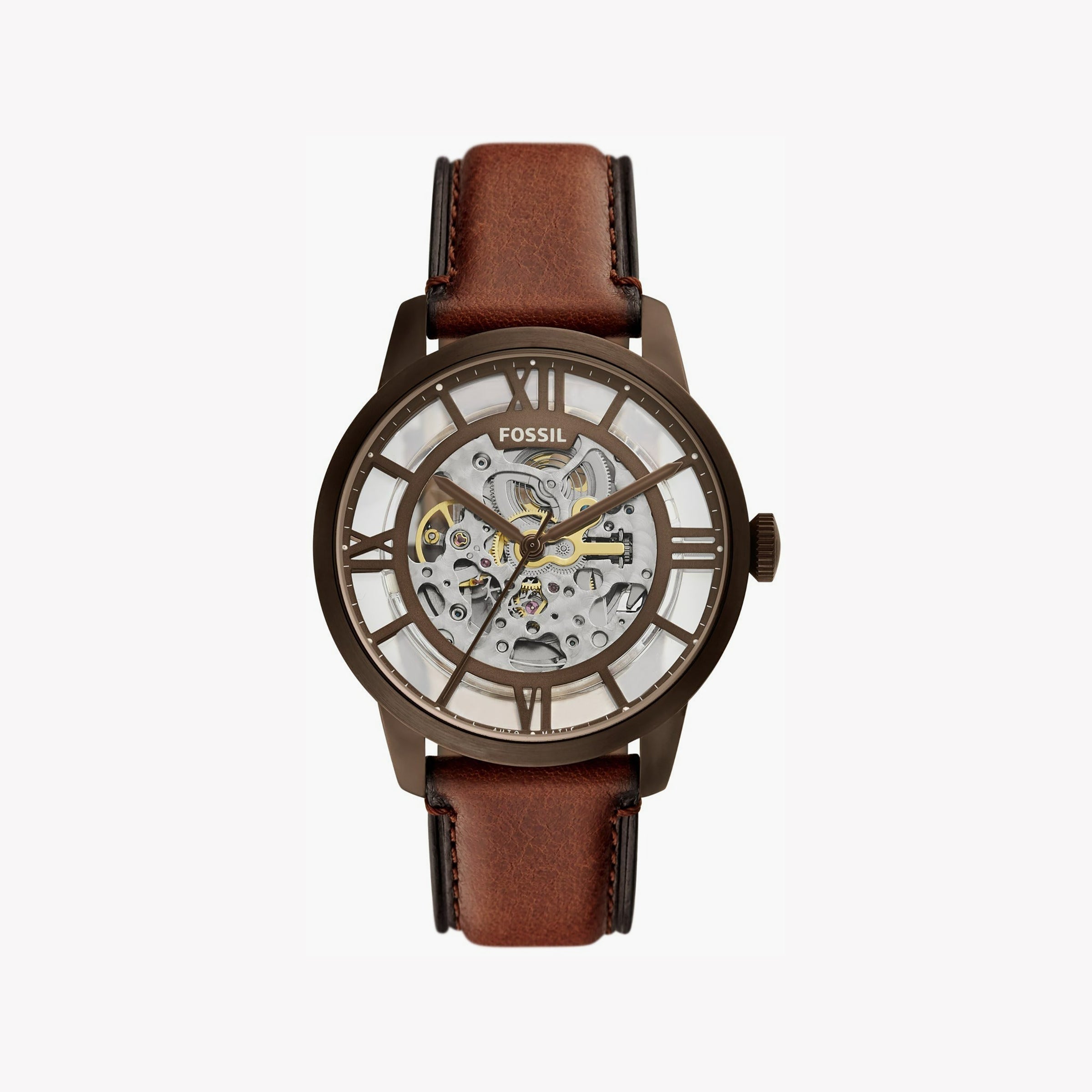 Fossil Men's Brown Leather Watch, White Dial | Me3225
