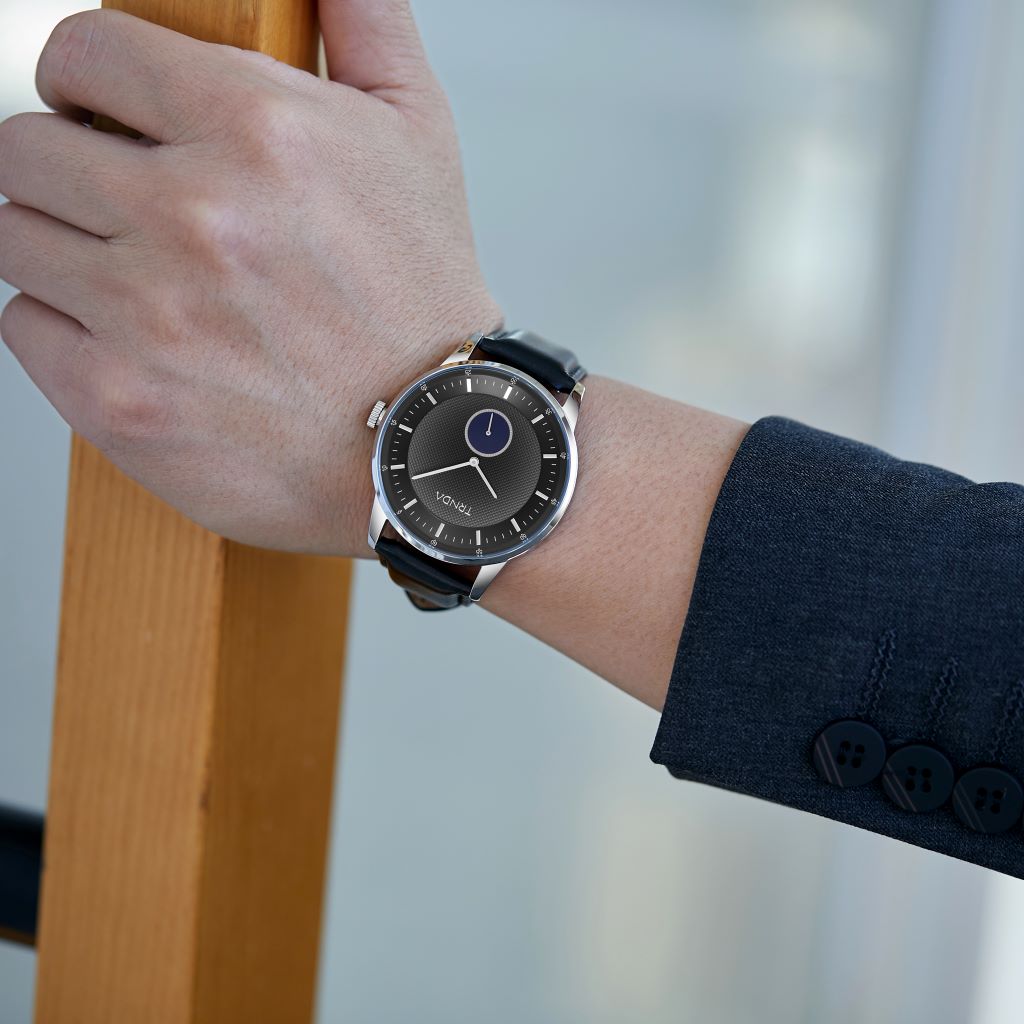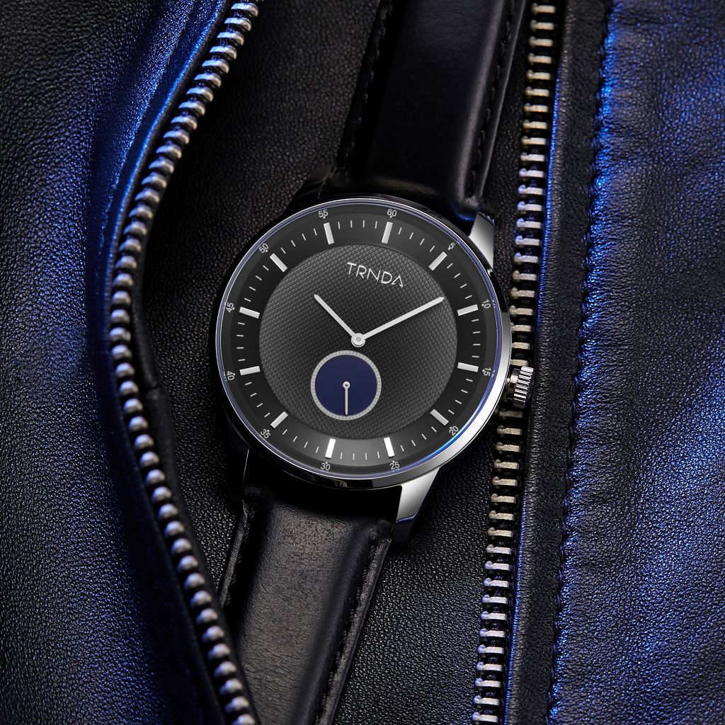 Trnda Men's Stainless Steel Watch, Black Leather Band | Trn-43sl