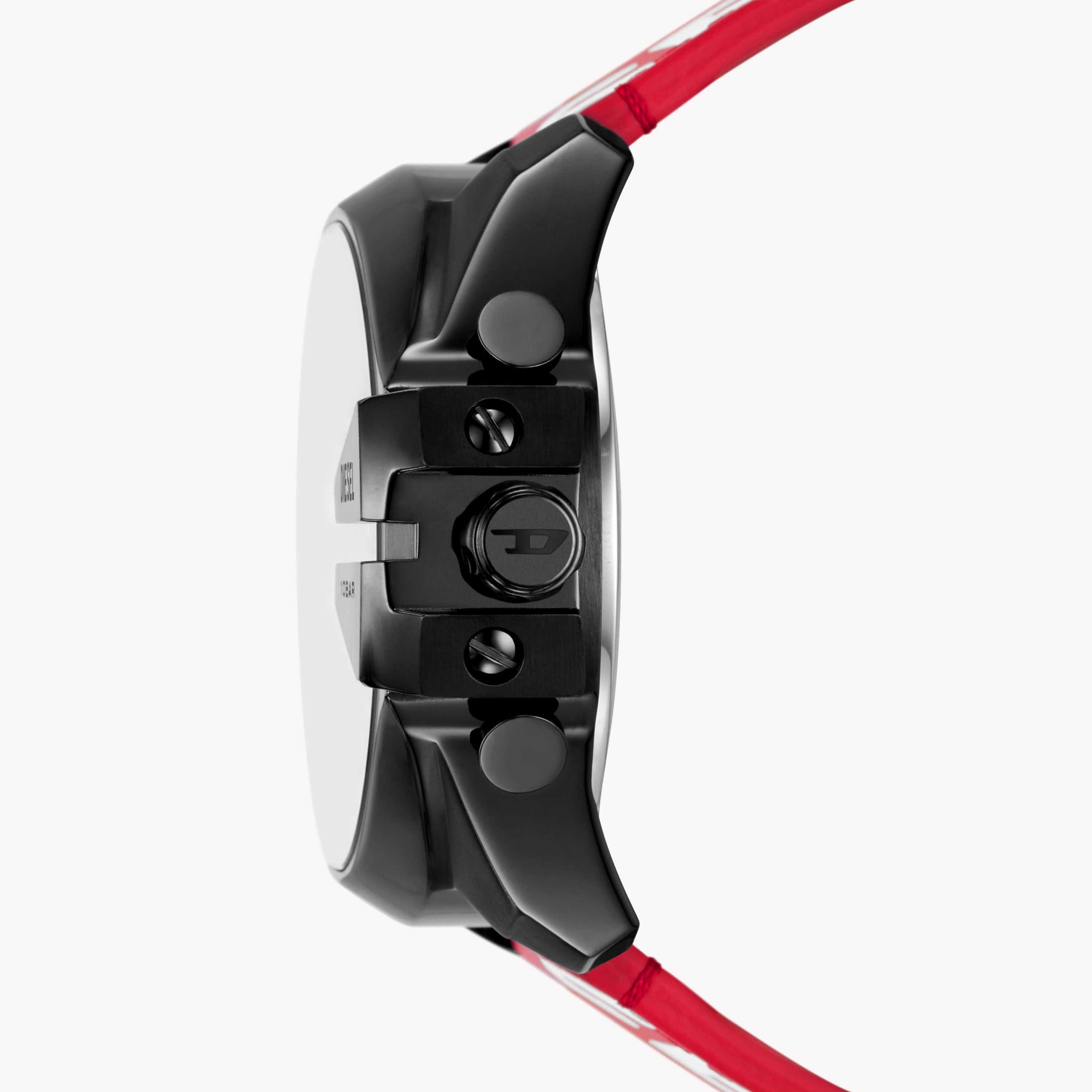 Diesel Men's Black Leather Watch, Red Band | Dz4647