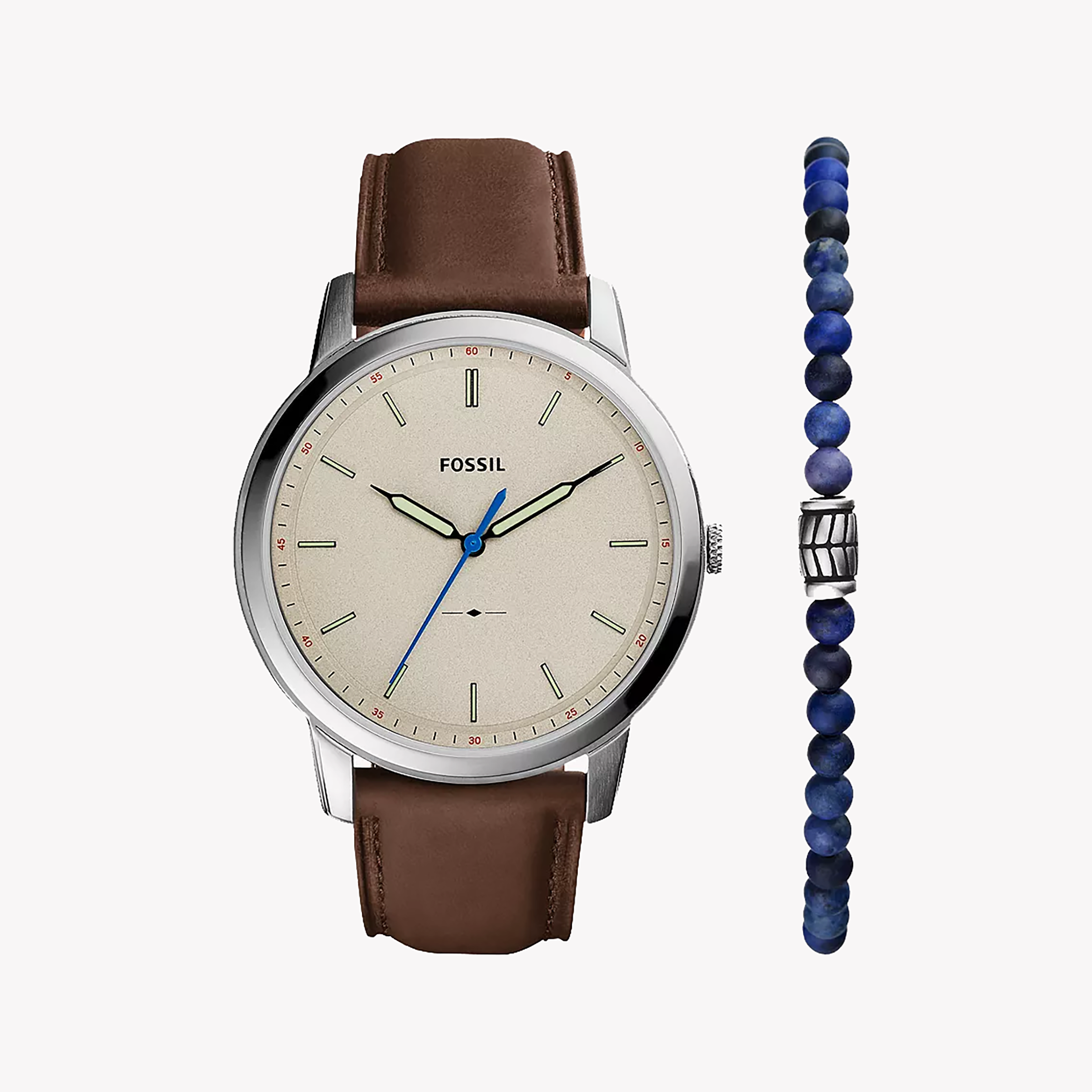 Fossil Men's Silver Watch, Brown Leather Strap | Fs5966set