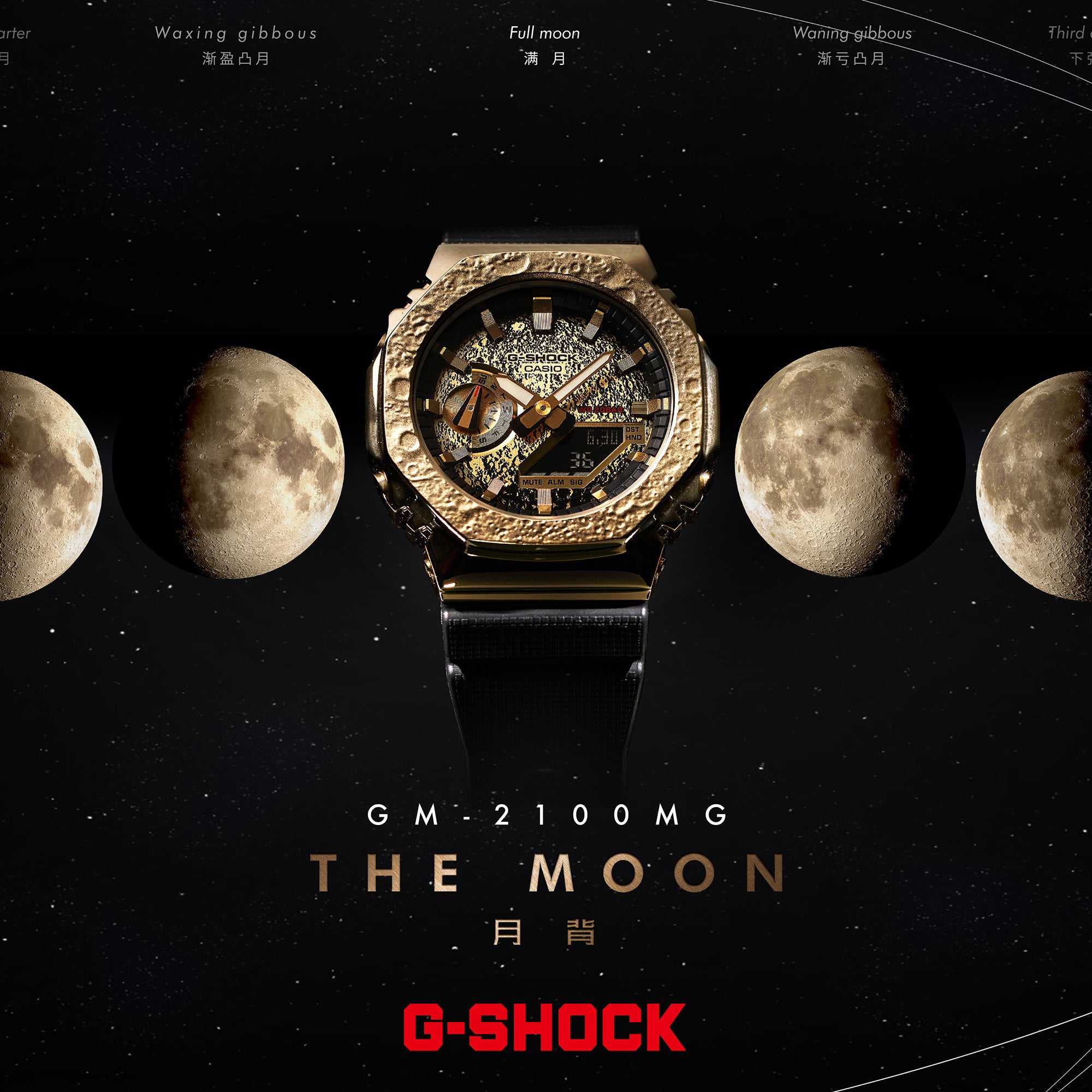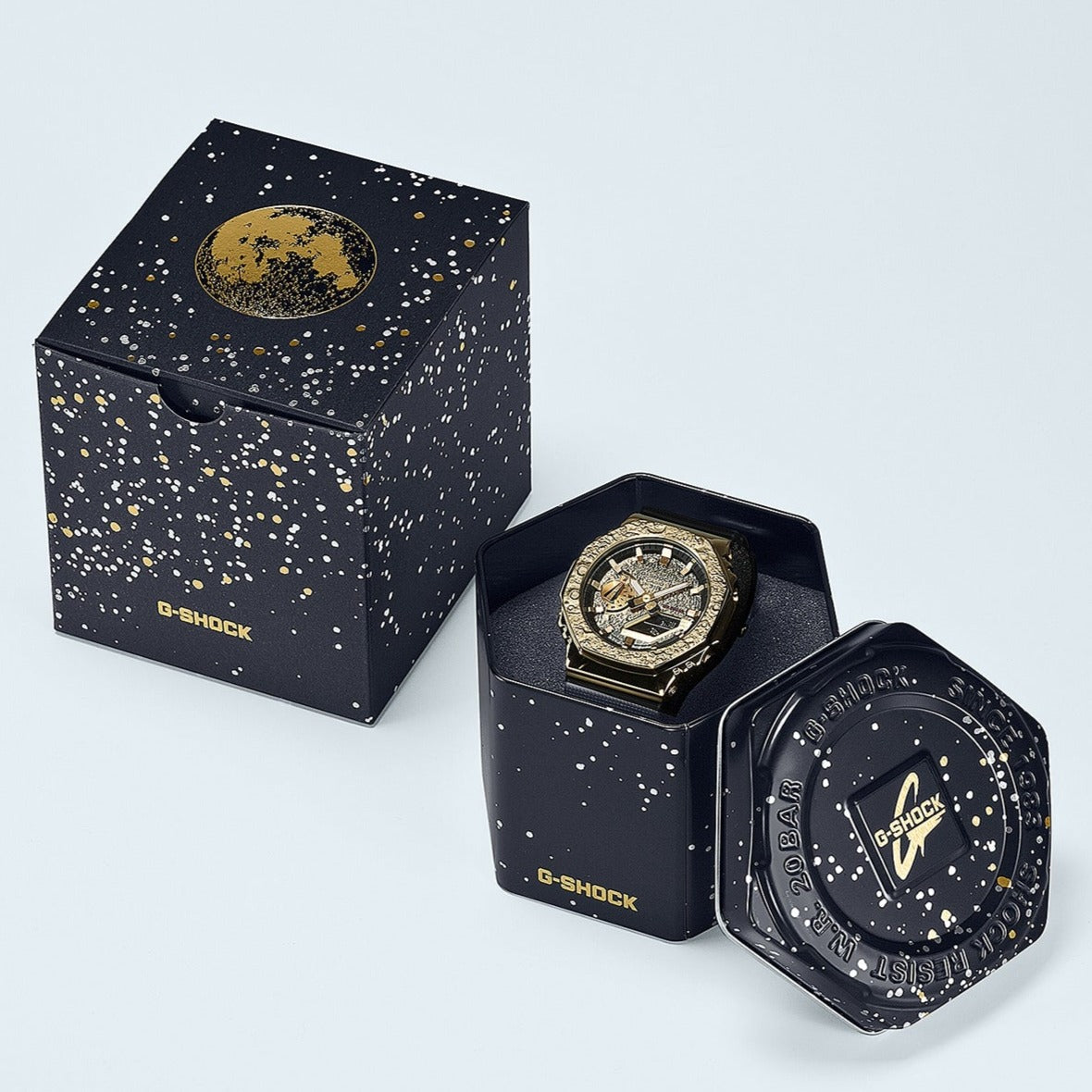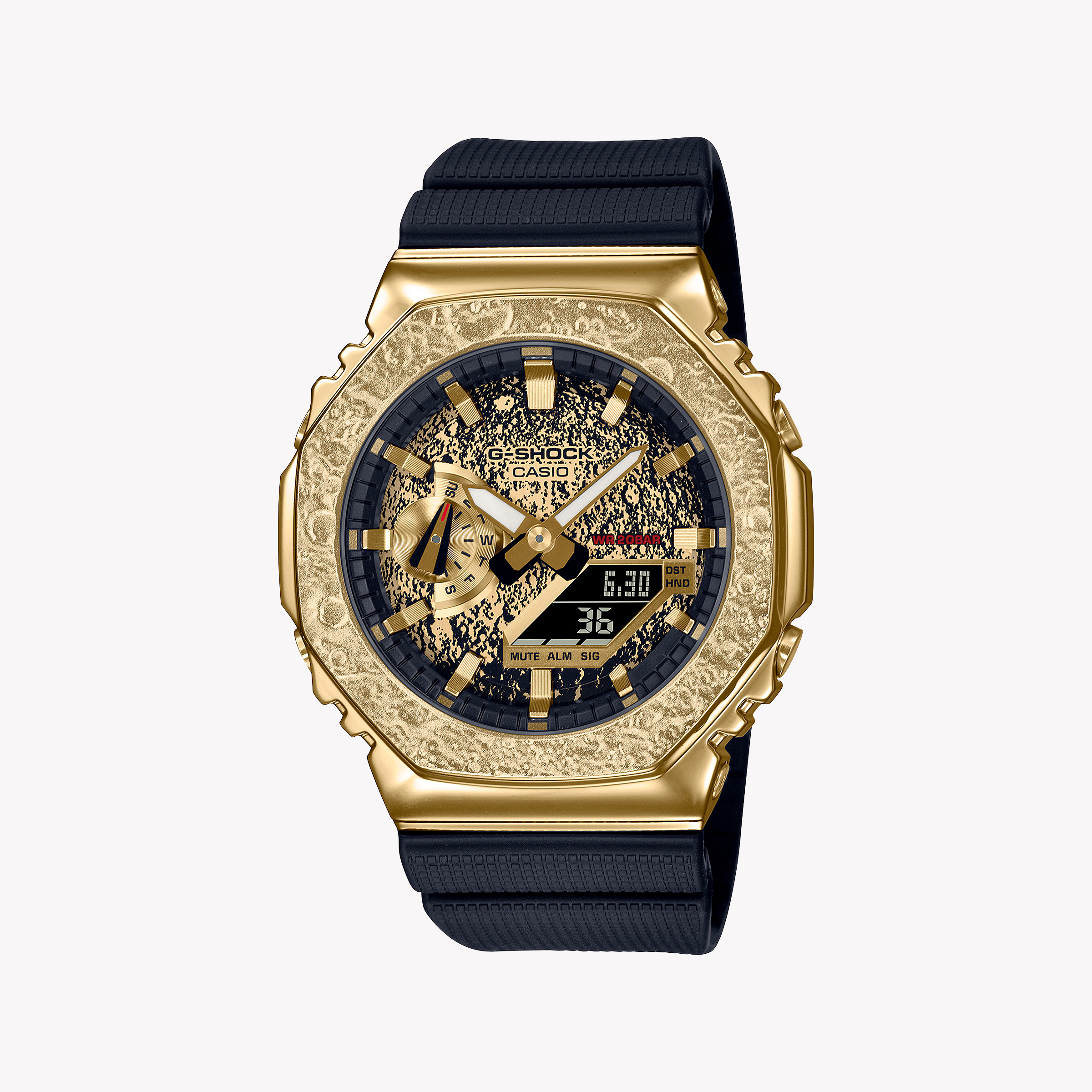 Shop the GM-2100MG-1ADR G-SHOCK watch, featuring a gold case, black resin band, 200m water resistance, double LED lights, and accurate timekeeping for an active lifestyle.