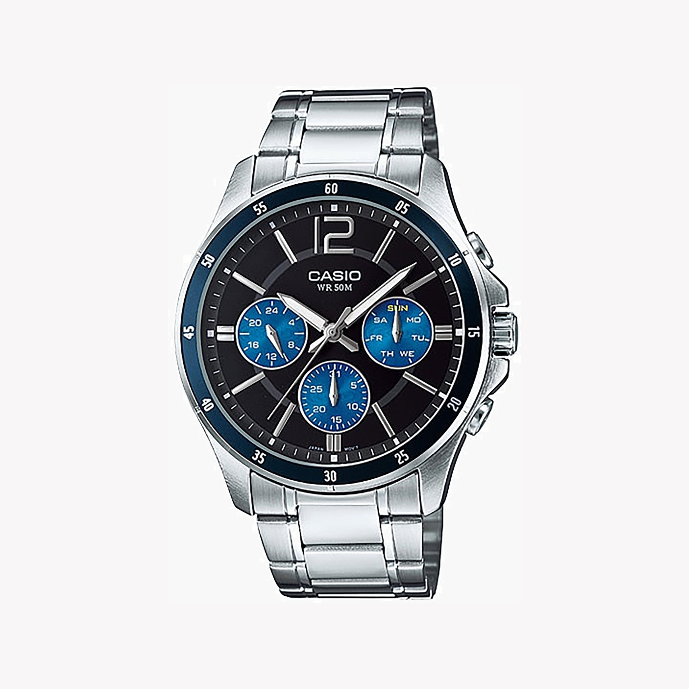 Experience the perfect blend of sophistication and style with the MTP-1374D-2AVDF. This elegant timepiece features a striking silver dial, durable stainless steel case, and versatile 5 ATM water resistance, making it an ideal companion for any occasion.