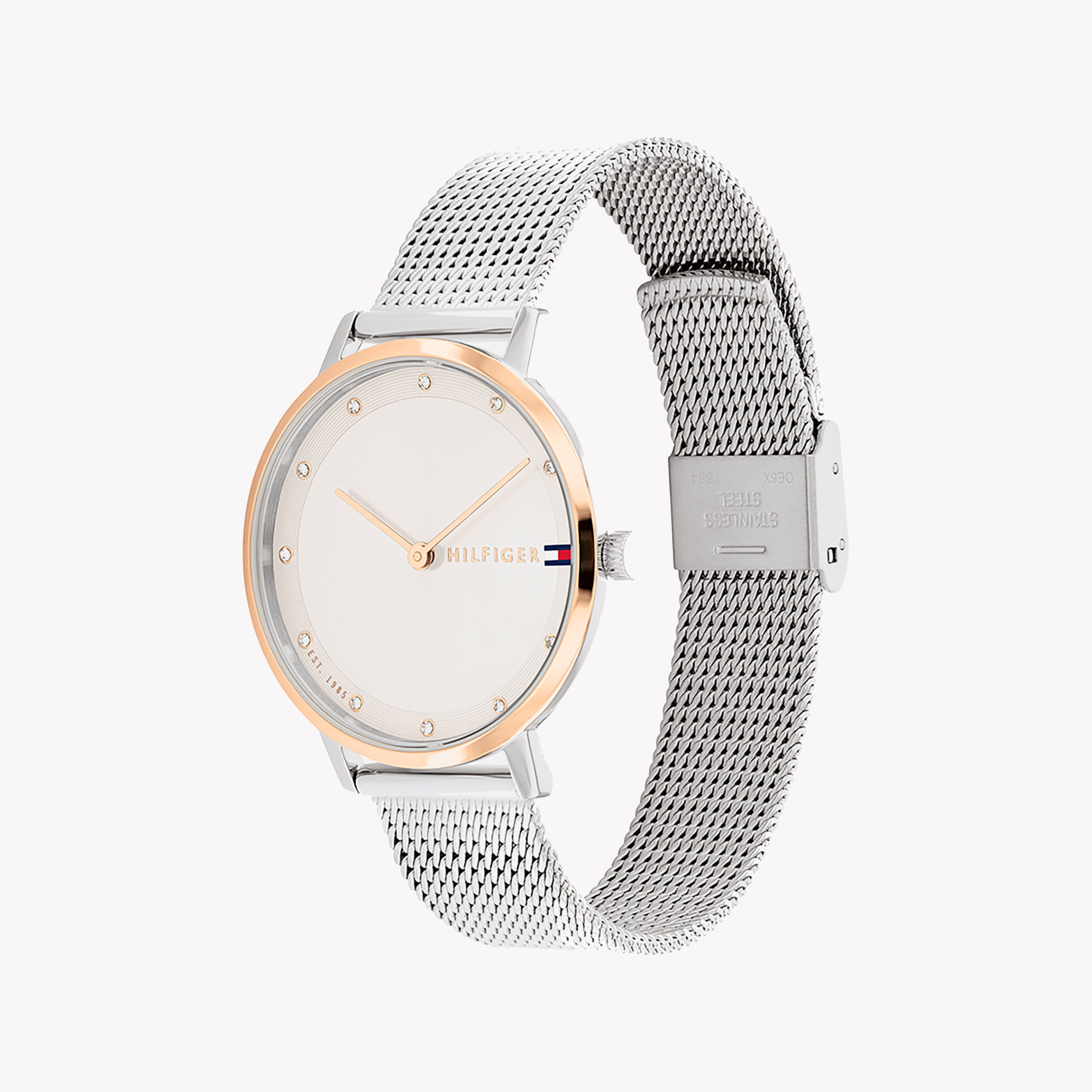TOMMY HILFIGER 1685490 ROSE GOLD ELEGANCE - Montre à quartz pour femme avec bracelet argenté et cadran blanc