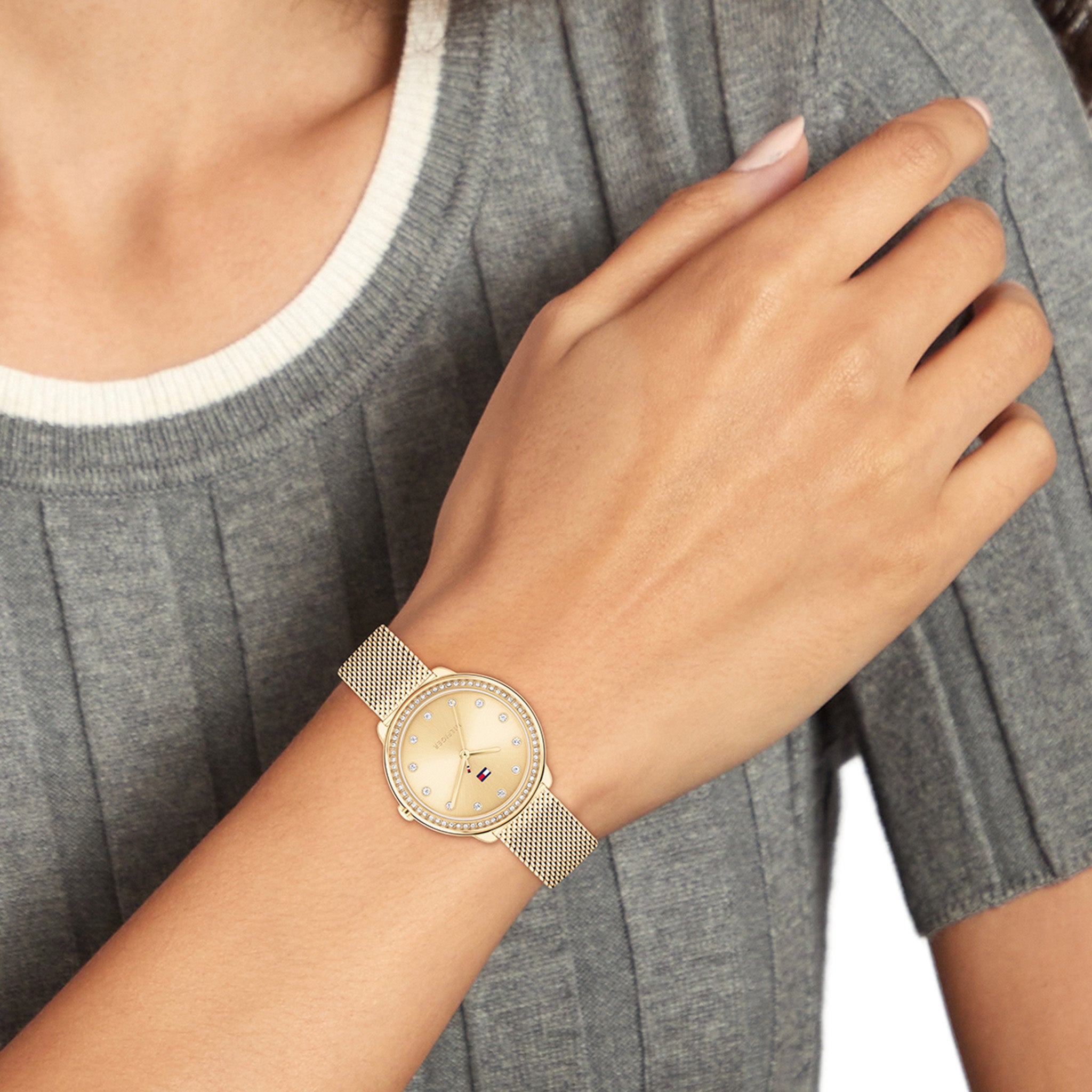 Découvrez la montre pour femme TOMMY HILFIGER SKU 1692138 : boîtier en acier inoxydable doré de 33 mm, bracelet confortable, étanche jusqu'à 3 ATM. Le style rencontre la fonctionnalité !