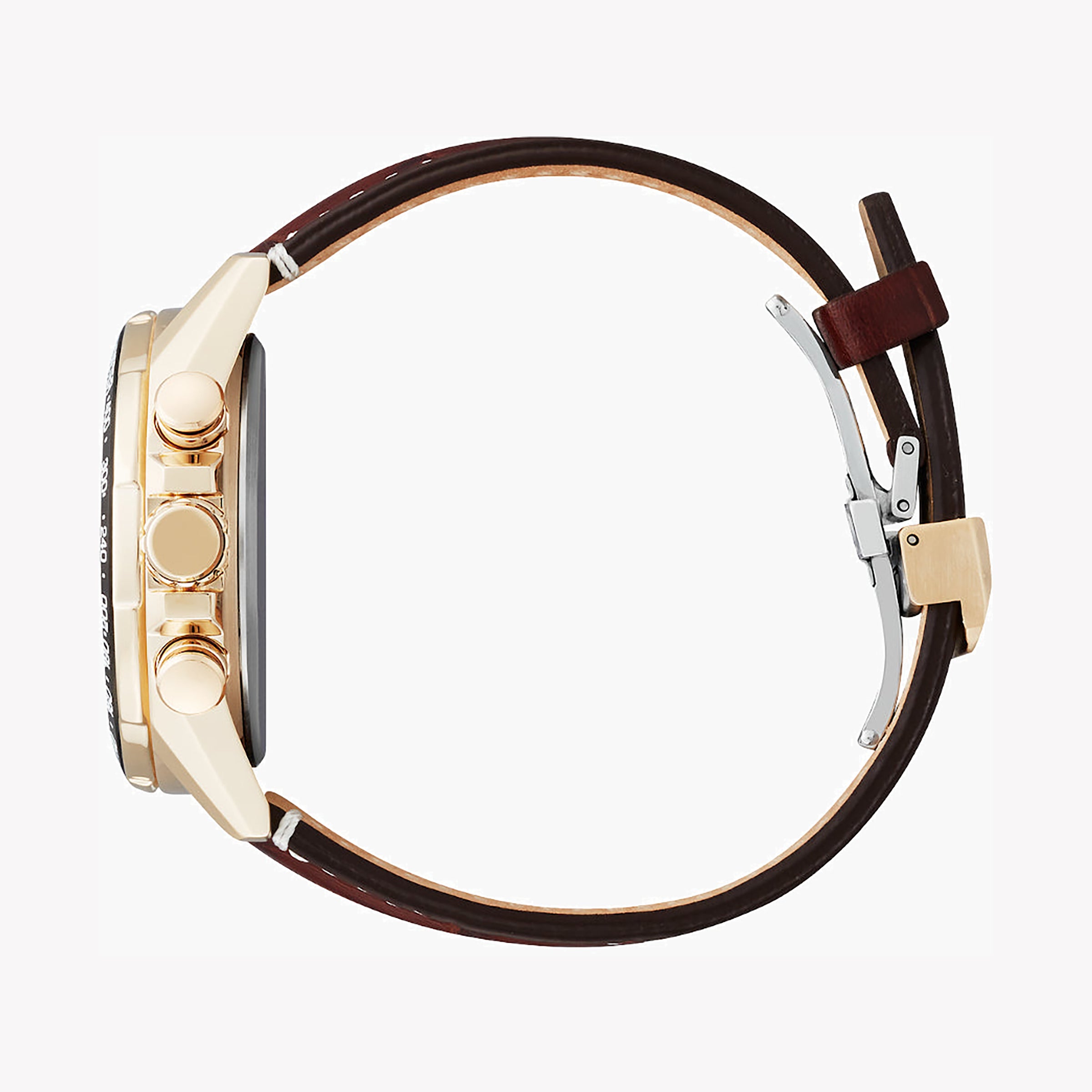 CITIZEN CB5919-00X - MONTRE POUR HOMME ÉLÉGANTE AVENTURIER avec acier inoxydable doré et bracelet en cuir marron
