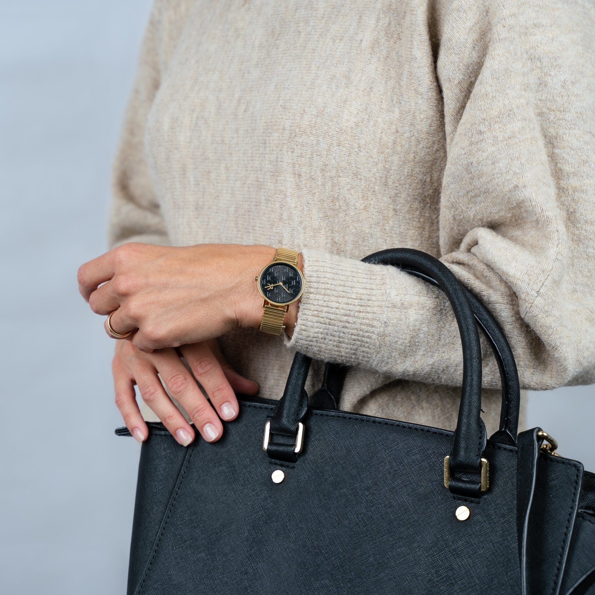 Une montre élégante et au look luxueux, la montre Pierre Cardin avec un boîtier rond en métal doré présente un bracelet en métal doré et un cadran noir. Avec un diamètre de boîtier de 31 mm, elle sera un excellent ajout à votre tenue.