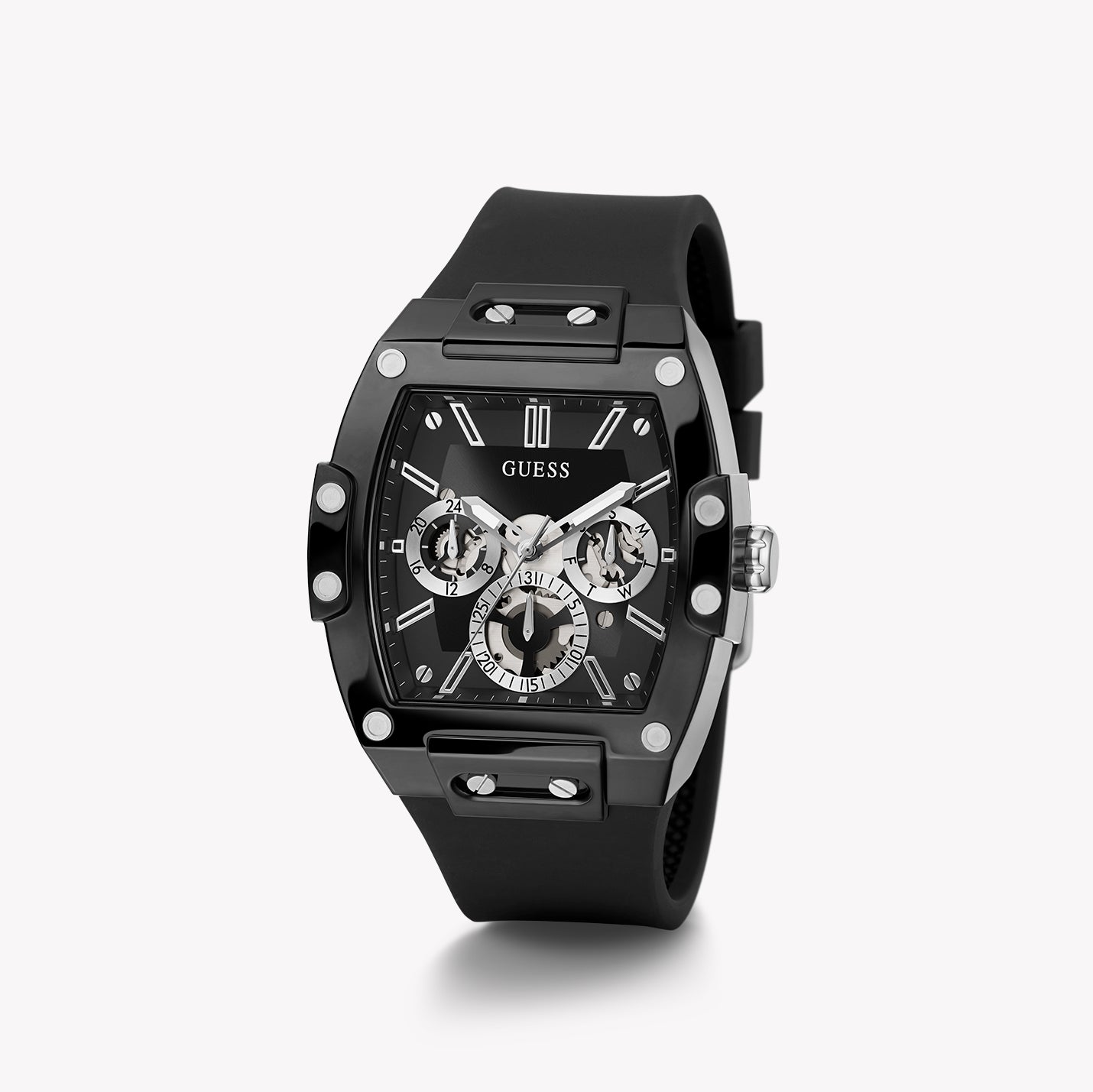 Embrace bold sophistication with the GUESS GW0203G3 men's watch. Featuring a striking multicolor dial and comfortable black silicone strap, it's the ultimate stylish and functional accessory.