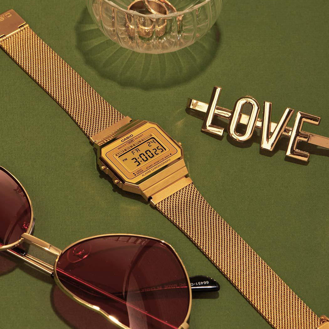CASIO A700WEMG-9AEF MONTRE UNISEXE ÉLÉGAMMENT MULTIFONCTIONNELLE - DESIGN ÉLÉGANT EN RÉSINE AVEC BRACELET EN MAILLE