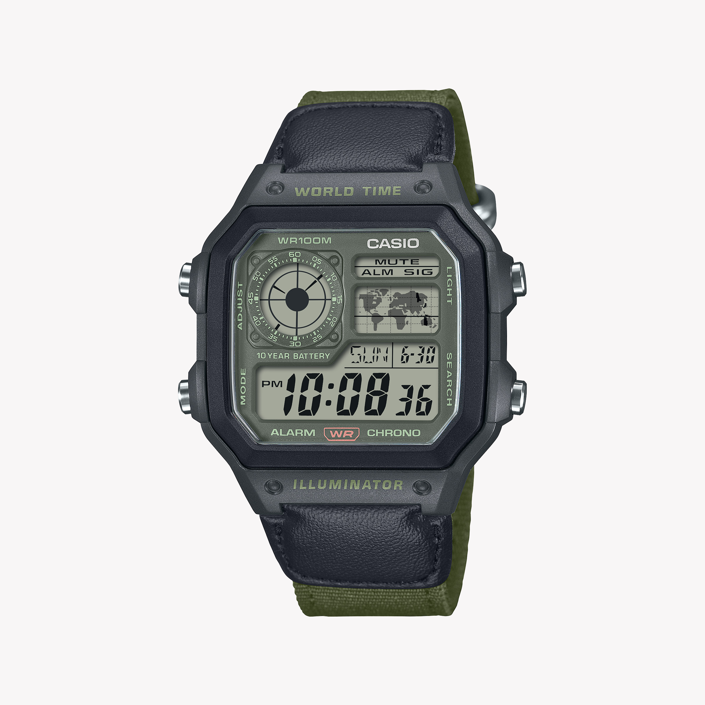 CASIO AE-1200WHUB-3AVEF BOLD TIMEKEEPER - MONTRE NUMÉRIQUE MODERNE POUR HOMMES AVEC BANDE EN CUIR VERT