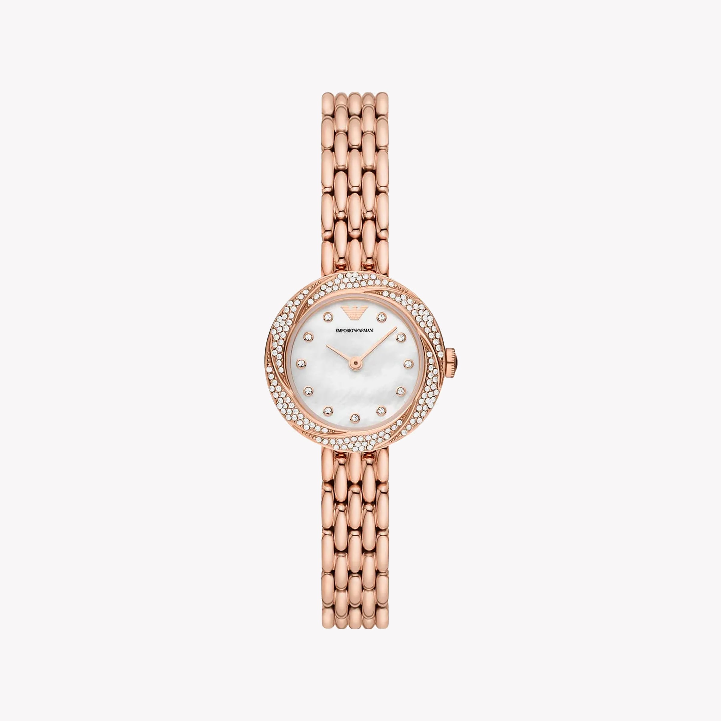 EMPORIO ARMANI AR11474 - MONTRE FEMME ÉLÉGANTE CHARM EN OR ROSE avec cadran blanc et bracelet en acier inoxydable
