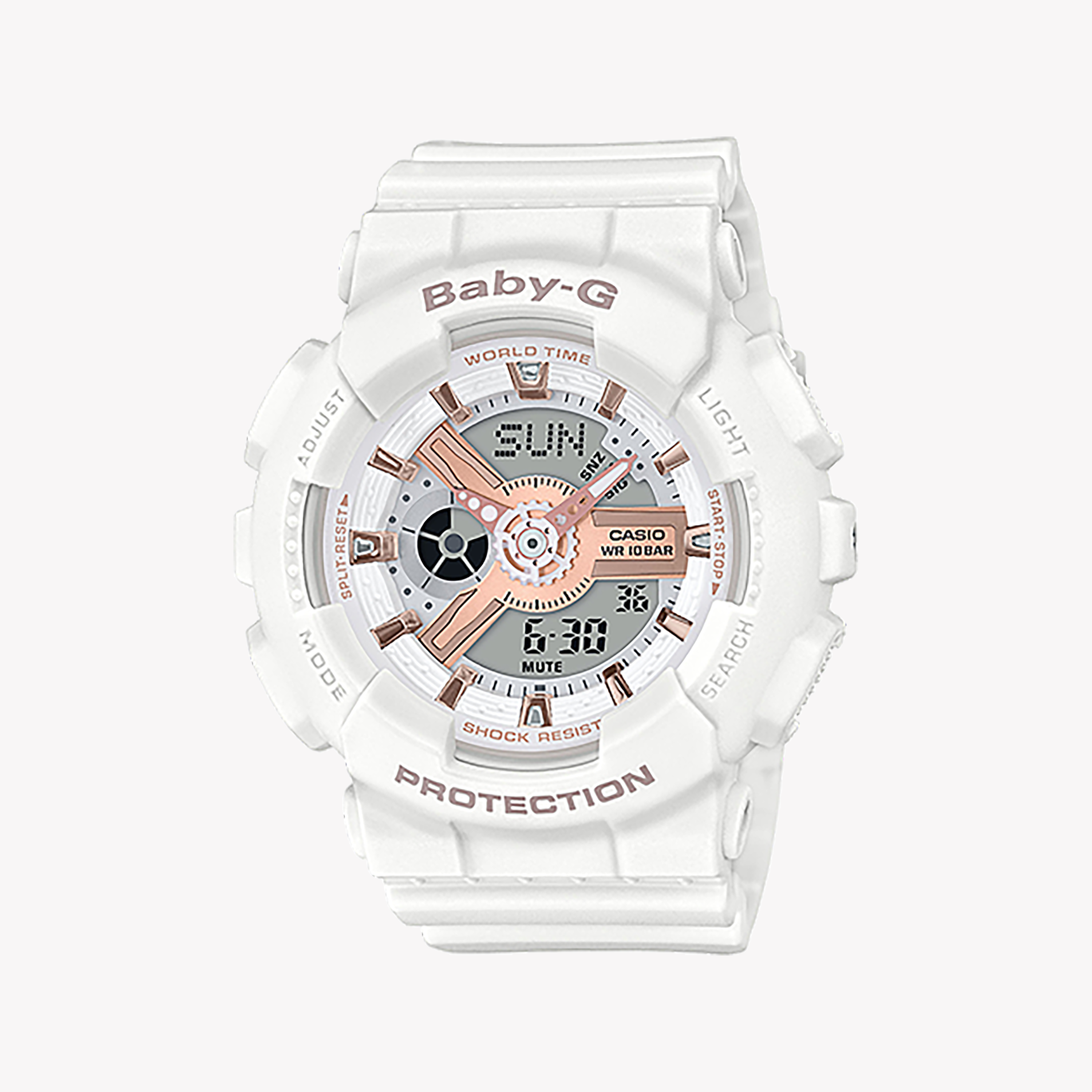 BABY-G BGA-250-7A3 BLANC BRILLANT - MONTRE NUMÉRIQUE SPORTIVE ÉLÉGANTE POUR FEMME avec résistance à l'eau et fonctions polyvalentes