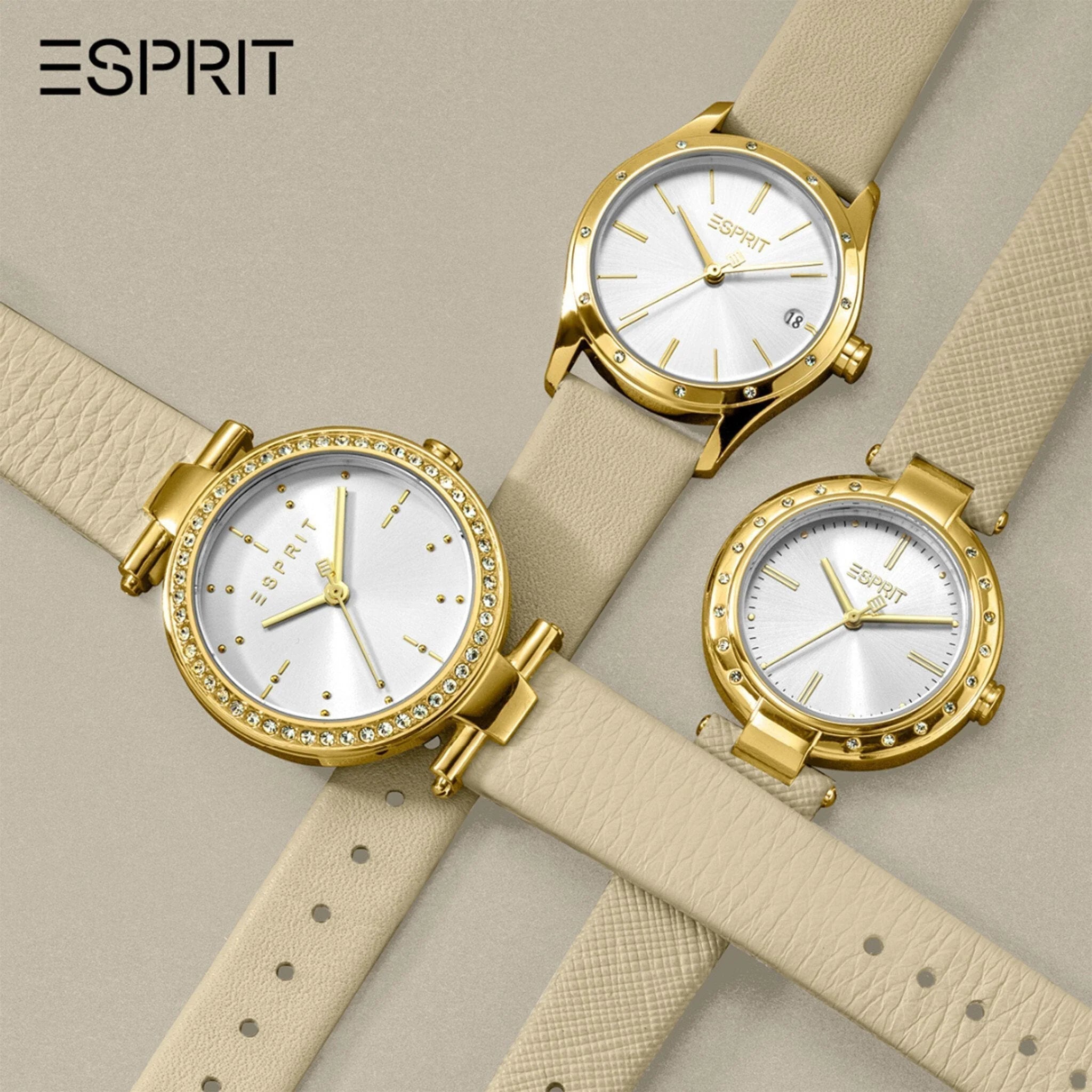 Montre ESPRIT pour femme avec boîtier en acier inoxydable argenté et bracelet en cuir beige