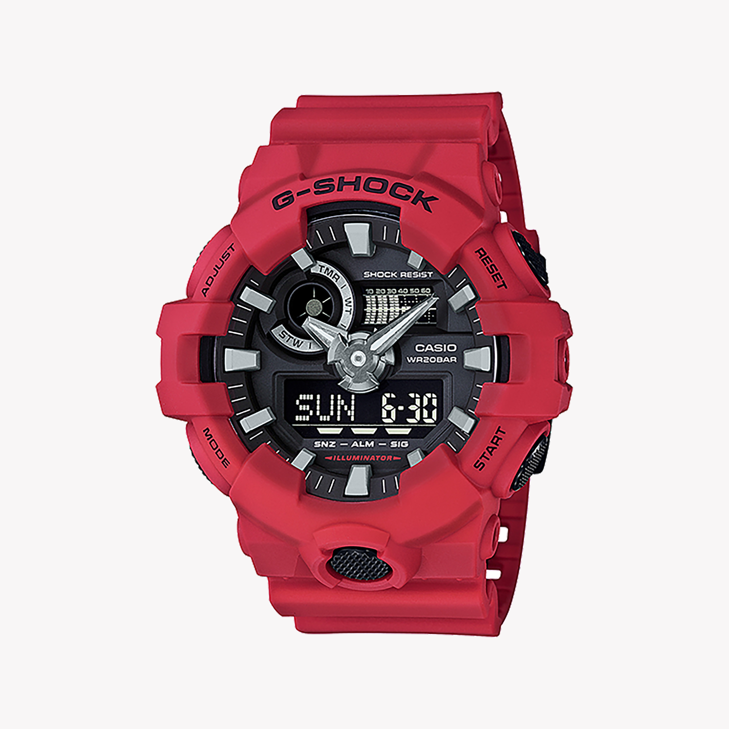 Embrassez votre passion pour le style et la robustesse avec la GA-700-4ADR G-SHOCK, un compagnon sportif construit pour durer, parfait pour le travail et les loisirs.