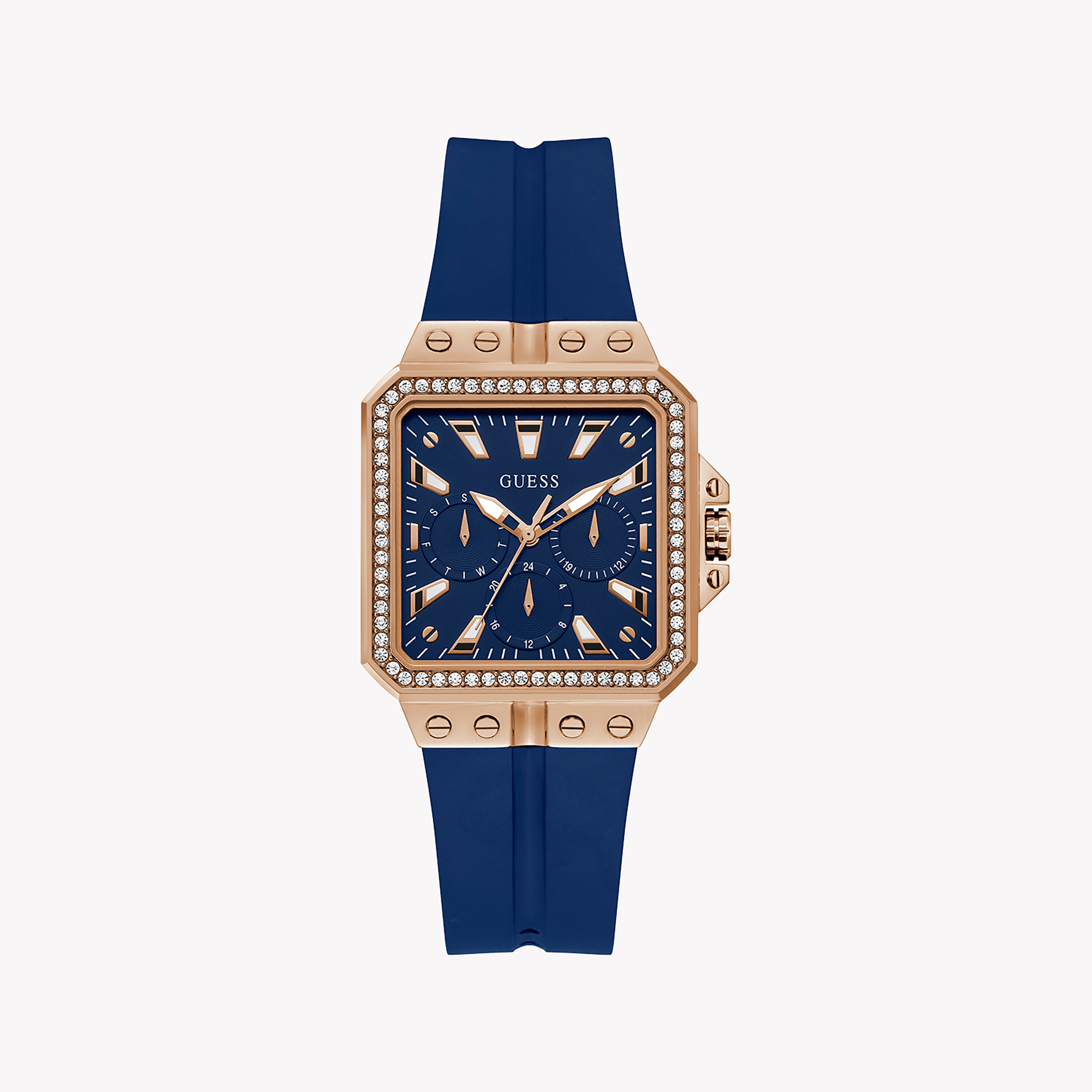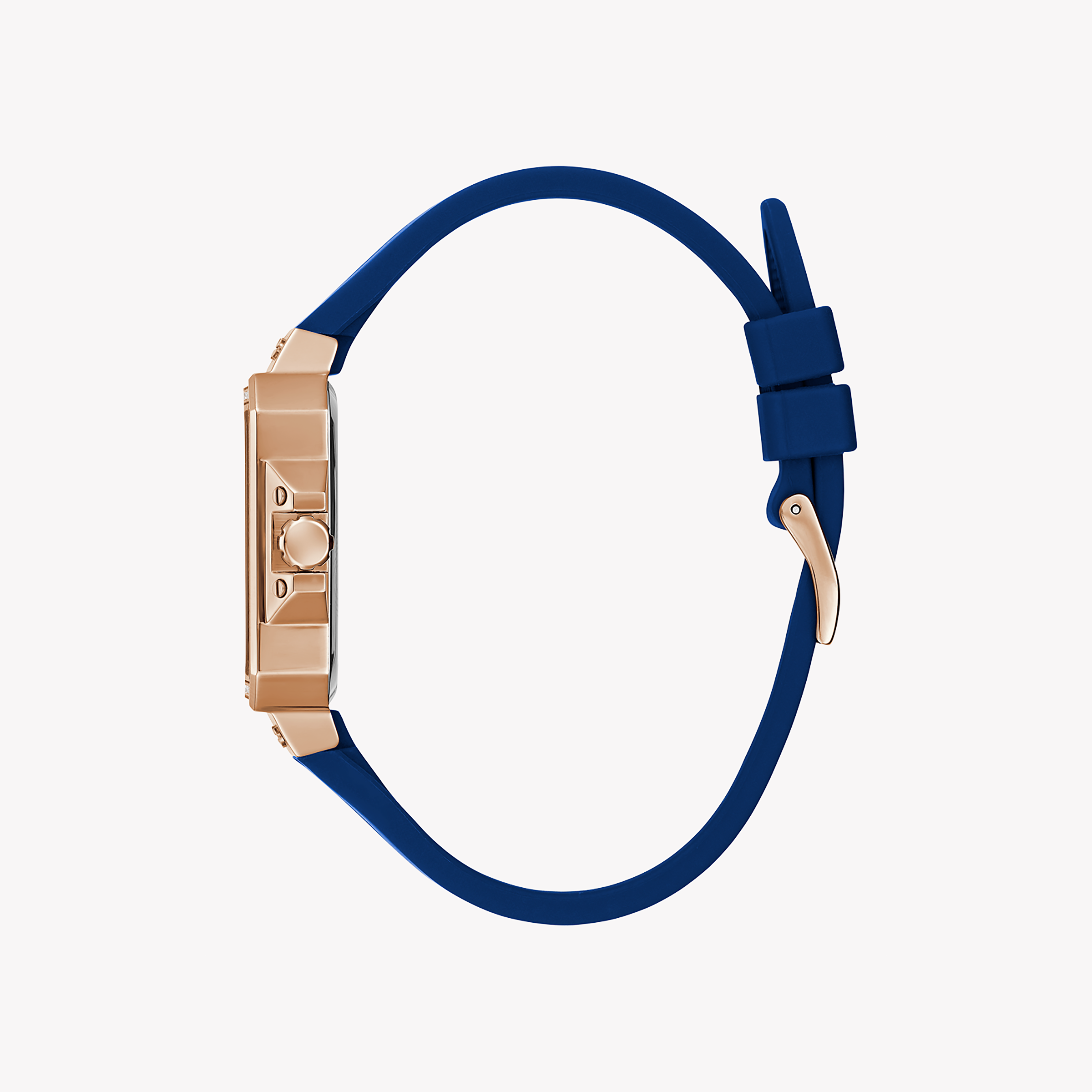 GUESS GW0618L2 CHARM EN OR ROSE - MONTRE POUR FEMME ÉLÉGANTE AVEC CADRAN BLEU ET BANDE EN SILICONE