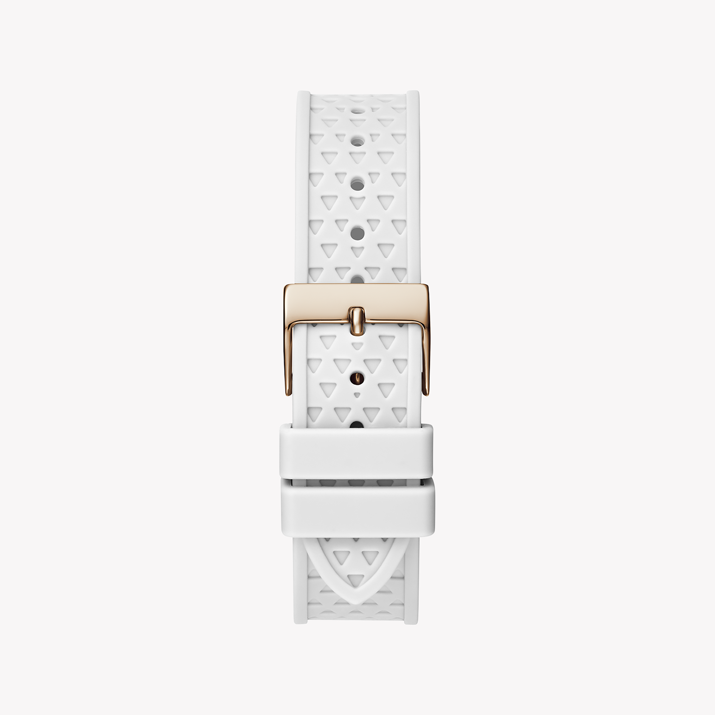 GUESS GW0694L3 ROSE GOLD GLAM - MONTRE ÉLÉGANTE POUR FEMME avec bracelet en silicone blanc et cadran blanc chic