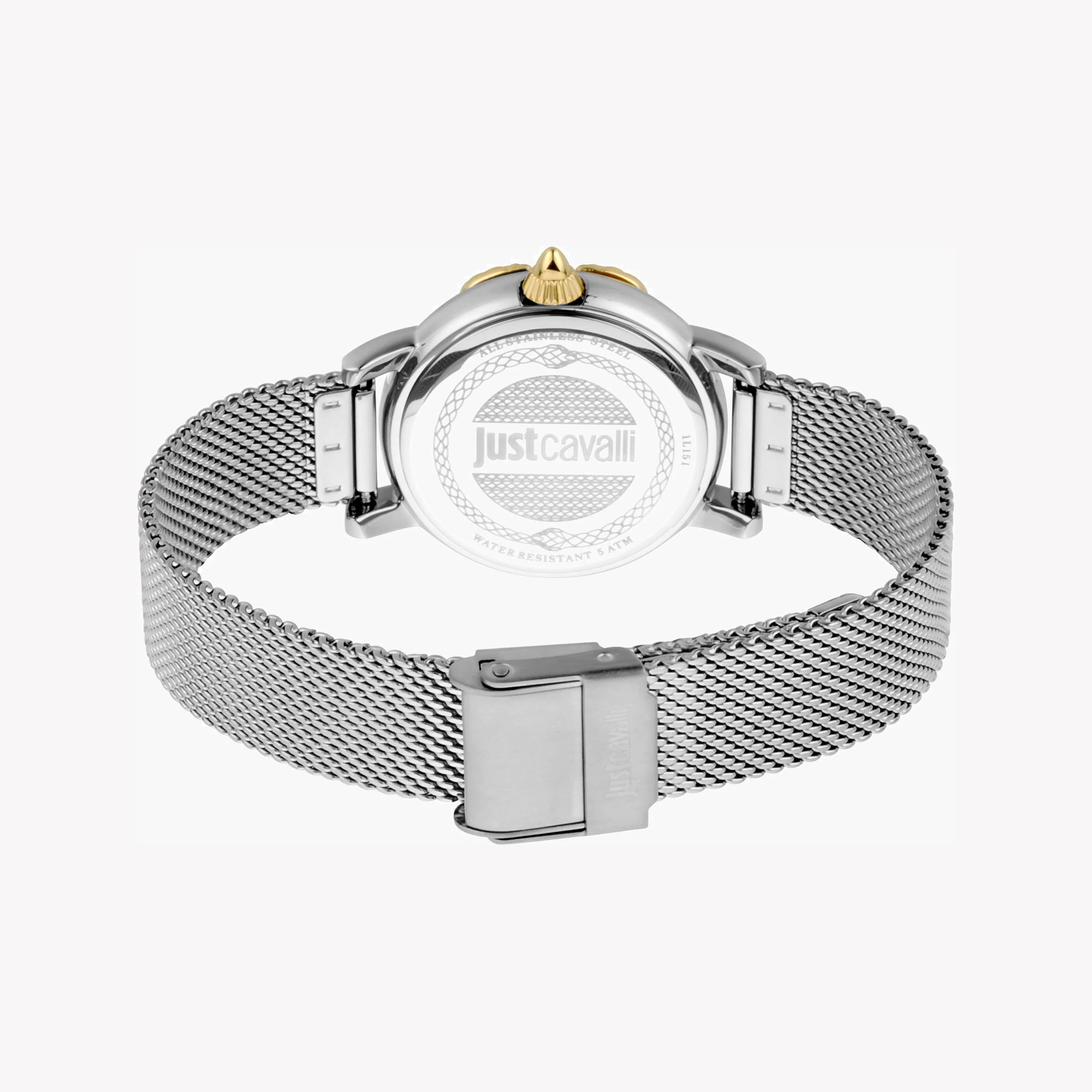 Montre pour femme JUST CAVALLI avec boîtier en acier inoxydable argenté et bracelet en acier inoxydable argenté