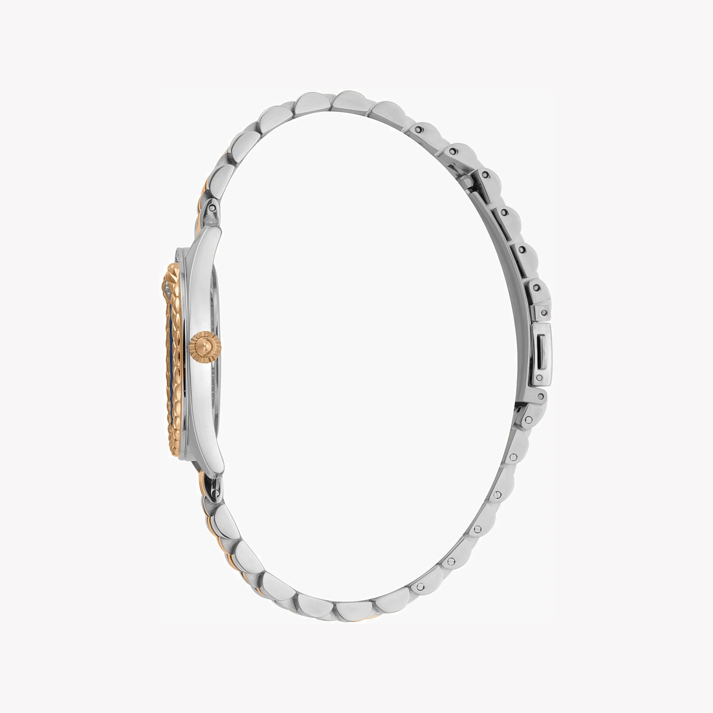 JUST CAVALLI Montre pour femme avec boîtier en acier inoxydable argenté et or rose et bracelet en acier inoxydable argenté et or rose
