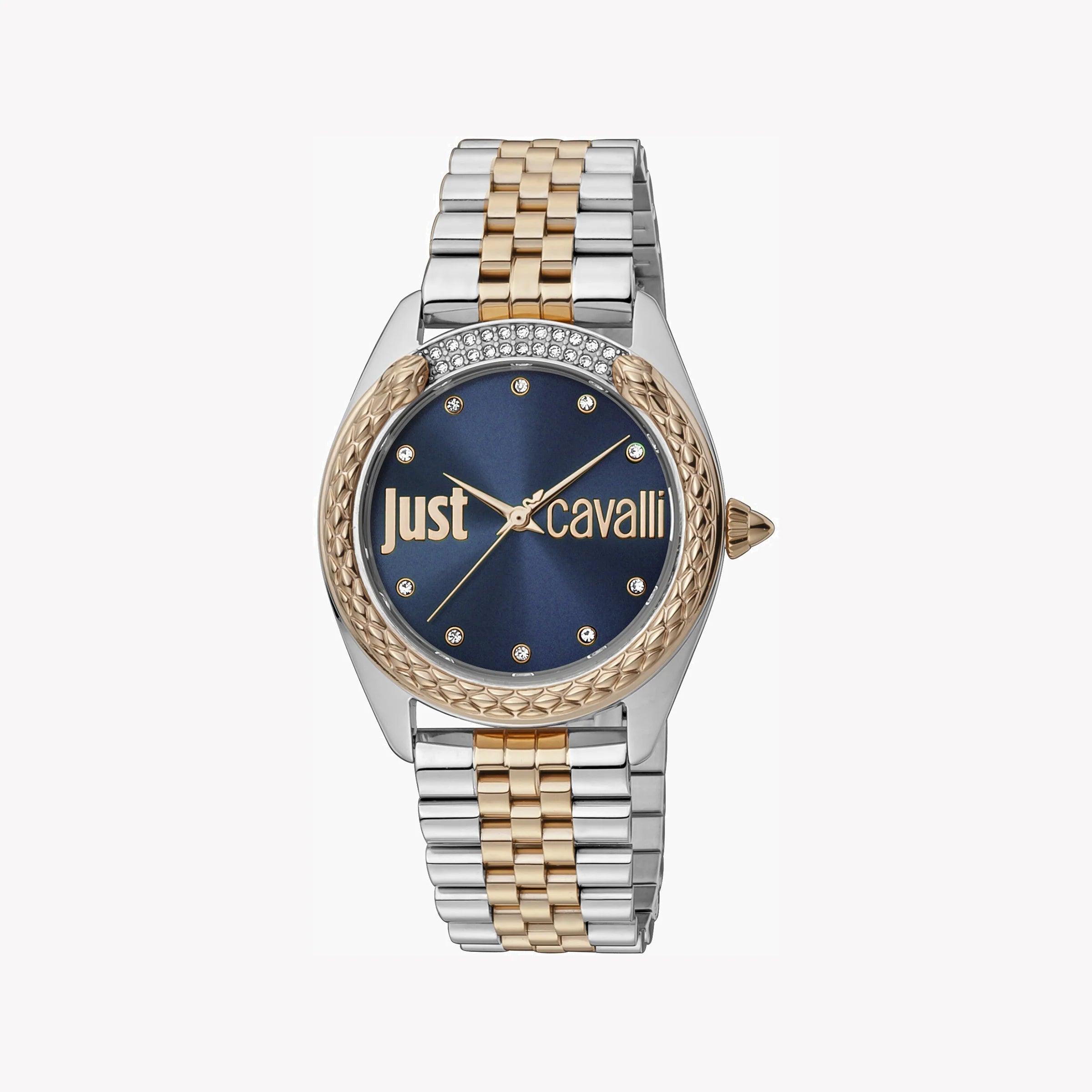 Intemporelle, sophistiquée, élégante. Cette montre pour femme Just Cavalli a tout pour plaire. Du bracelet en acier inoxydable argenté et or rose au boîtier rond en acier inoxydable argenté et or rose de 34 mm de diamètre et bien sûr à l'élégant cadran bleu, cette montre est la représentation parfaite de la sophistication ultime.