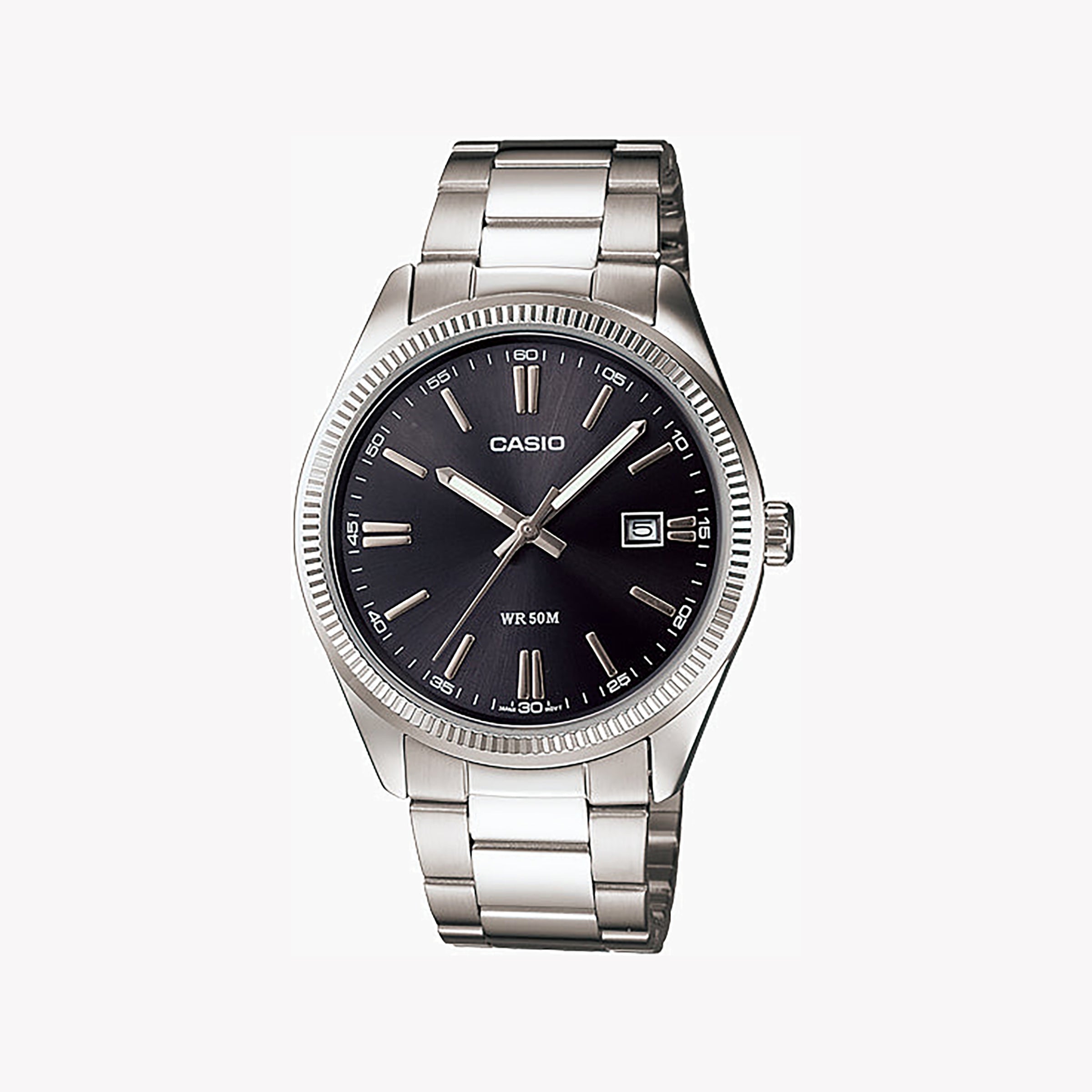 CASIO MTP-1302D-1A1VDF - MONTRE POUR HOMMES ÉLÉGAMMENT POLYVALENTE AVEC BANDE EN MÉTAL ARGENT ET CADRAN NOIR CLASSIQUE