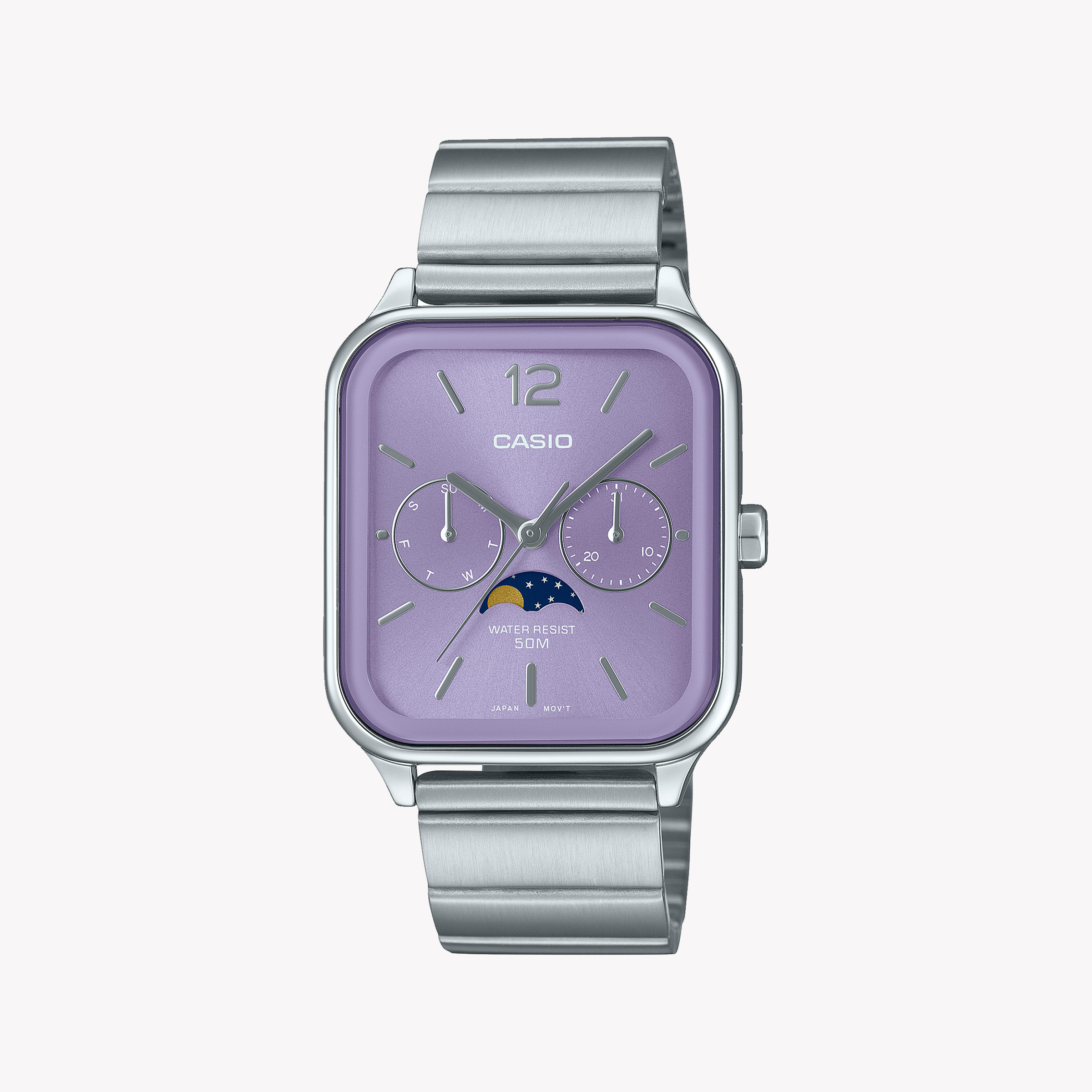CASIO MTP-M305D-6AVDF ELEGANCE - MONTRE POUR HOMMES ÉLÉGANTE AVEC CADRAN VIOLET ET BANDE EN ACIER INOXYDABLE