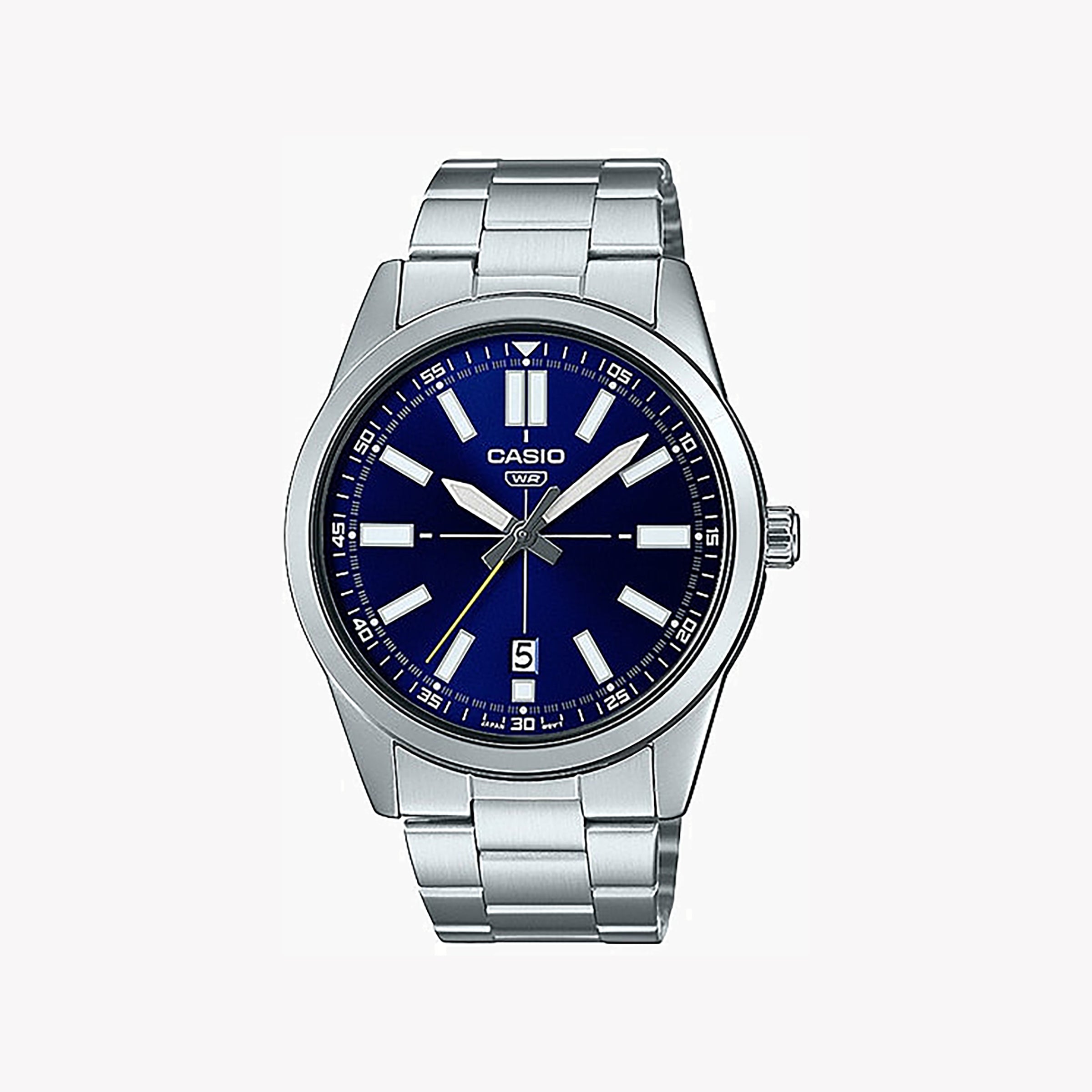 CASIO MTP-VD02D-2E ADVENTURE MASTER - MONTRE ÉLÉGANTE POUR HOMMES AVEC CADRAN BLEU ET BANDE EN ACIER INOXYDABLE