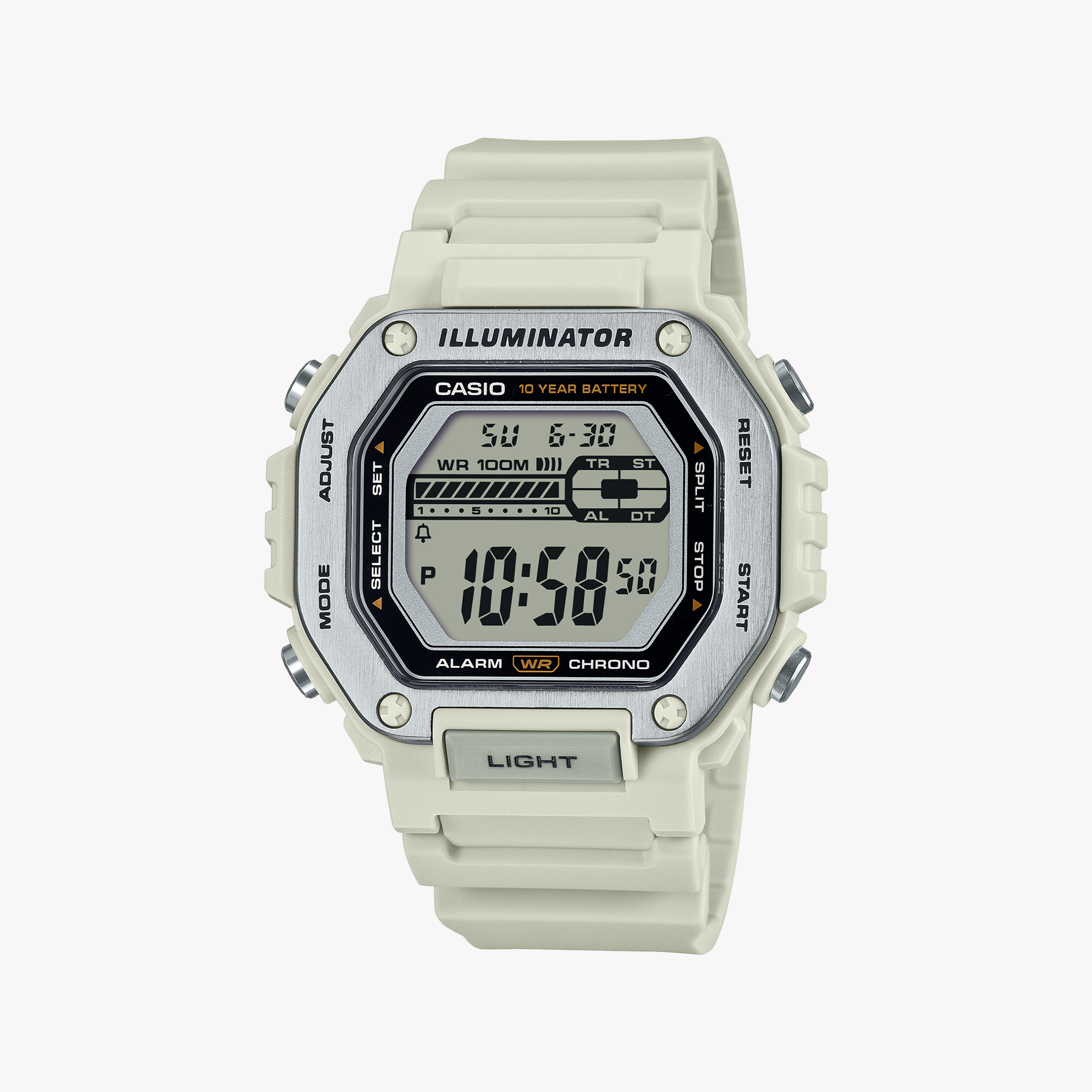 CASIO MWD-110H-8AVDF ADVENTURE READY - MONTRE NUMÉRIQUE ÉLÉGANTE POUR HOMMES AVEC BOÎTIER ARGENT ET BANDE BLANCHE