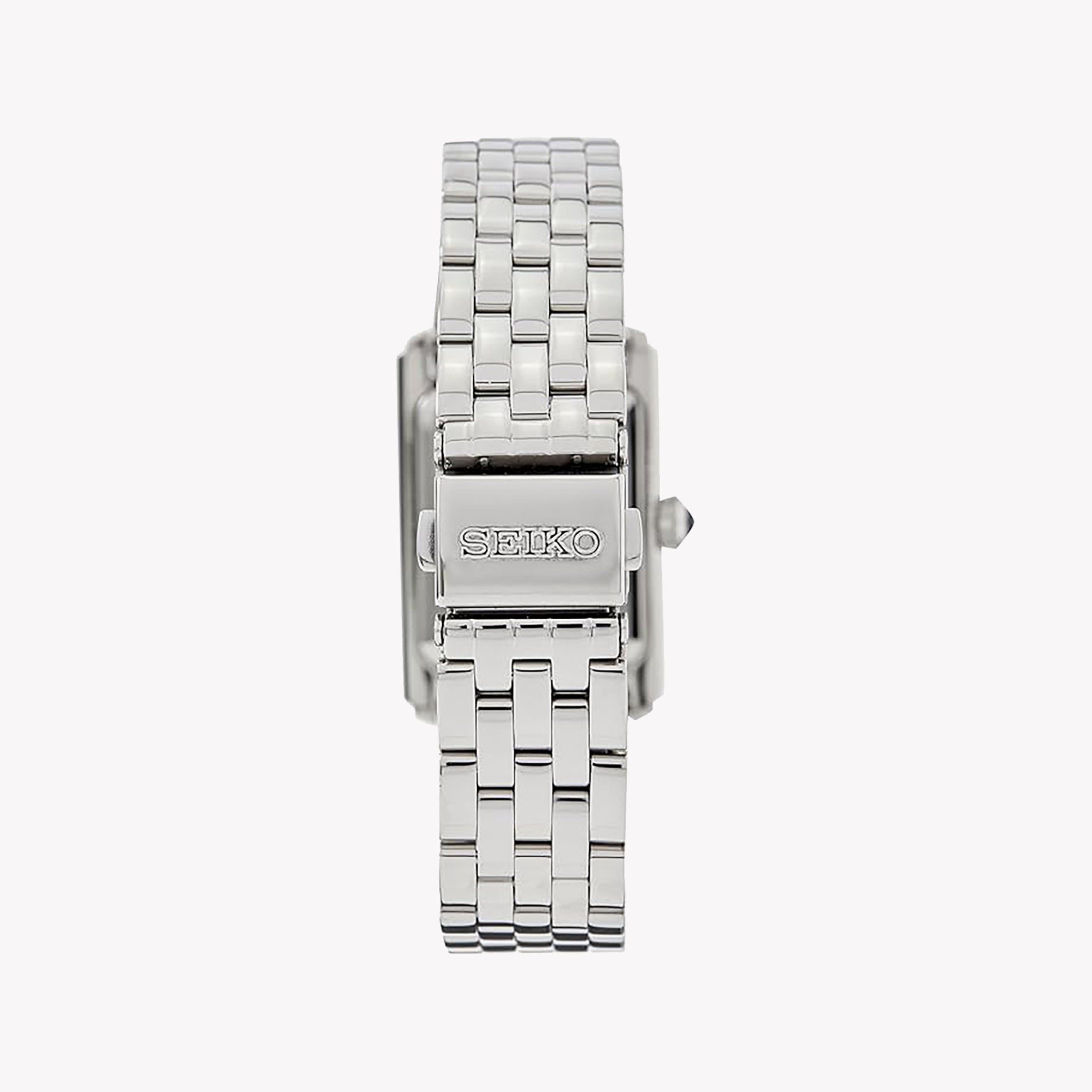 Introducing the SEIKO SWR085P1, an elegant timepiece designed for the modern woman. With its striking silver stainless steel case and captivating blue dial, this 22.2 mm watch combines style and functionality. Enjoy precise quartz movement and 5 ATM water resistance for a sophisticated accessory that enhances any outfit—perfect for both casual outings and special occasions.