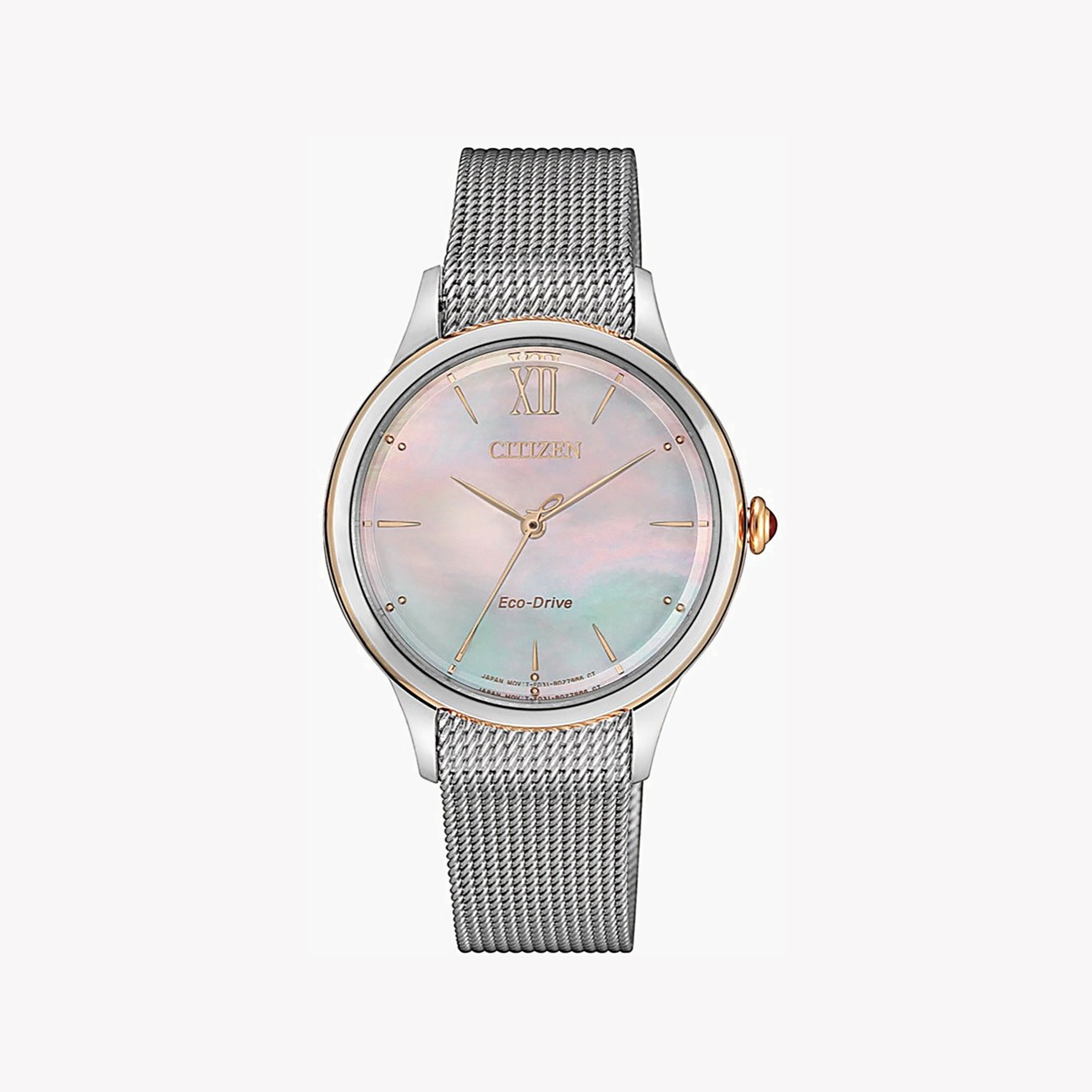 CITIZEN EM0816-88Y RADIANT CHARM - ÉLÉGANTE MONTRE POUR FEMMES EN MAILLE ARGENTÉE ECO-DRIVE