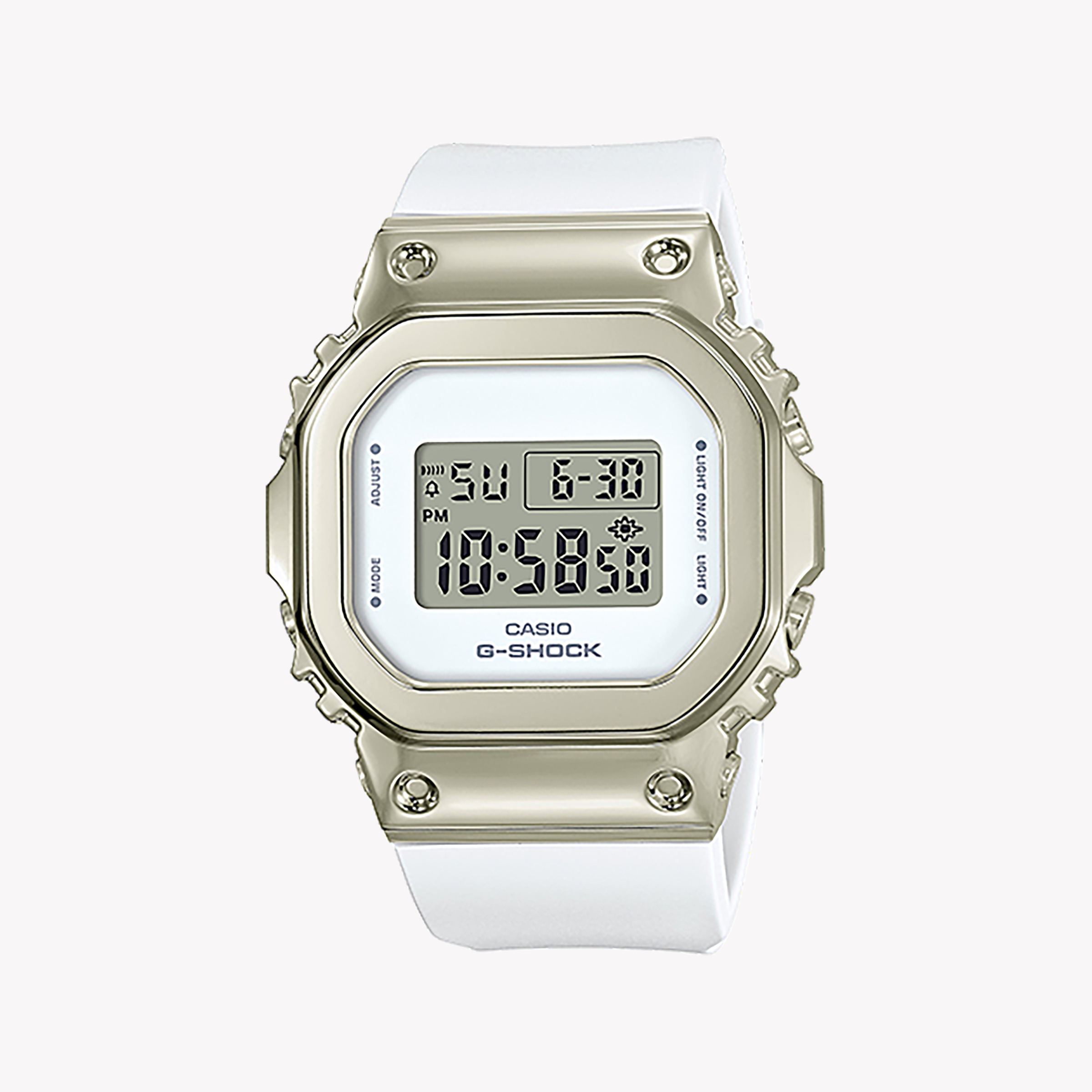 CASIO G-SHOCK GM-S5600G-7DR ELEGANT ADVENTURER - Montre élégante pour femme avec bracelet en résine avec cadran numérique et boîtier en acier blanc