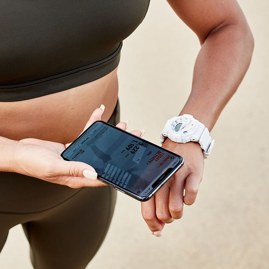 - Connectivité Intelligente : Liez votre montre à votre smartphone via Bluetooth® pour débloquer des capacités fitness supplémentaires, telles que des journaux de comptage de pas et la planification d'entraînements via l'application G-SHOCK Connected.