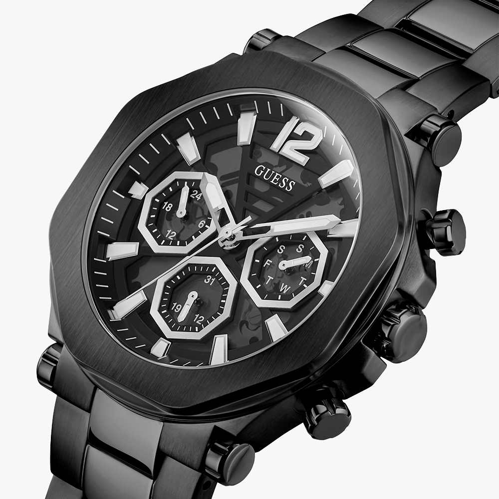 GUESS GW0539G3 - MONTRE POUR HOMMES AUDACILEMENT SOPHISTIQUÉE AVEC ACIER INOXYDABLE NOIR ET CADRAN FRAPPANT